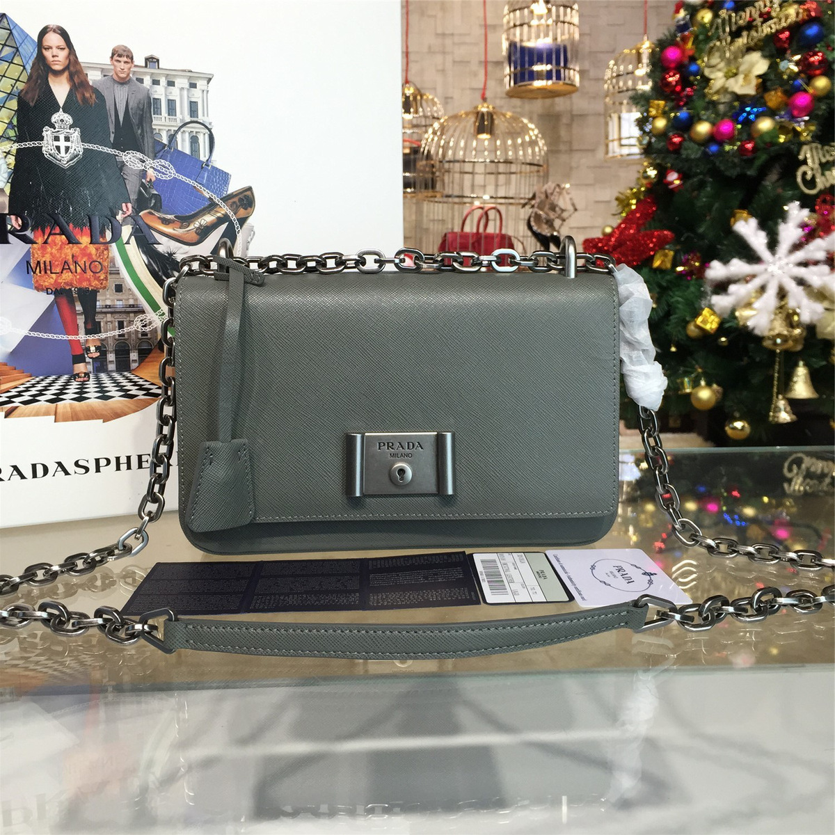 Pra*a re-nylon and saffiano leather shoulder bag gray 2vd768 32 x 24 x 12 cm