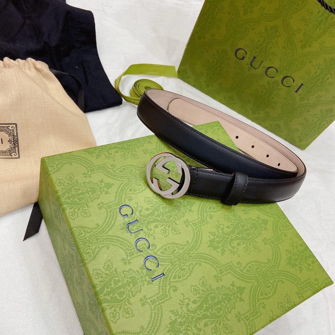 GG Marmont Leather Belt With Shiny Buckle Black 3 cm