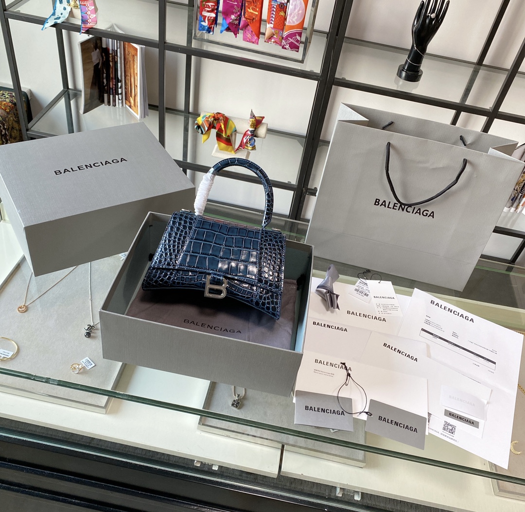 Ba1en*iaga women's hourglass small top handle bag in crocodile leather navy 5935461 23 x 10 x 24 cm