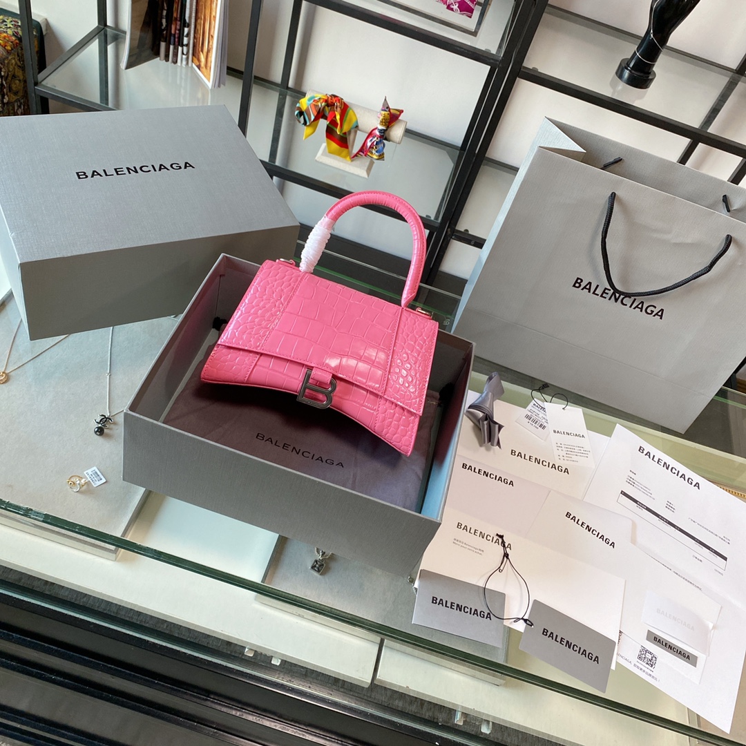 Ba1en*iaga women's hourglass small top handle bag in crocodile leather pink 5935461 23 x 10 x 24 cm