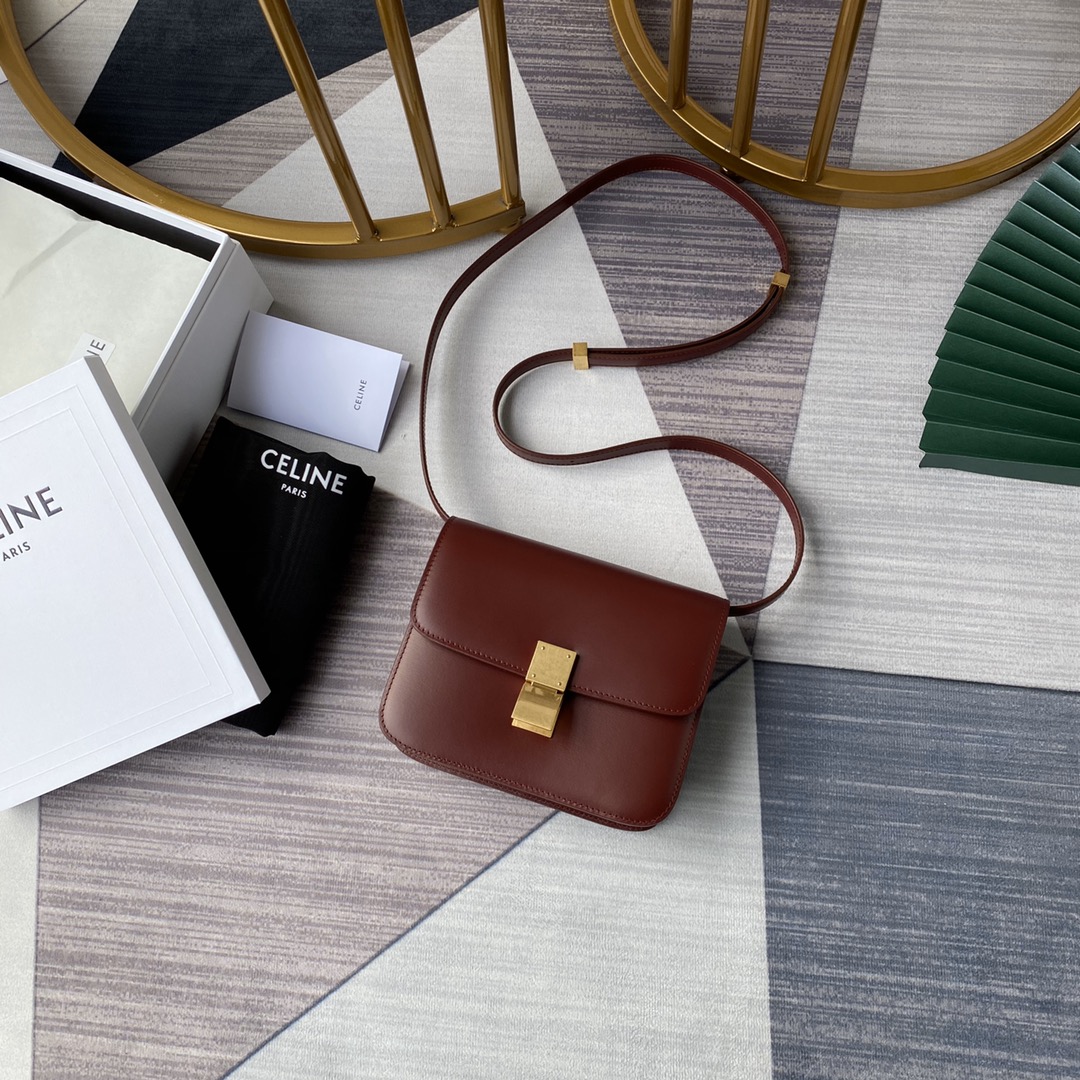 Ce1i*e small classic bag in box calfskin burgundy 189183dls 18 x 15 x 6 cm