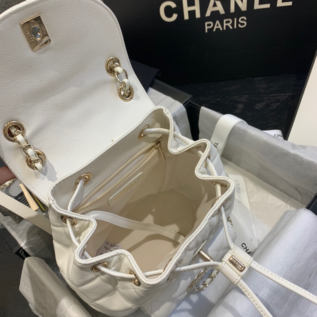 Ch**el backpack grained calfskin white as1371 21.5 x 24 x 12 cm