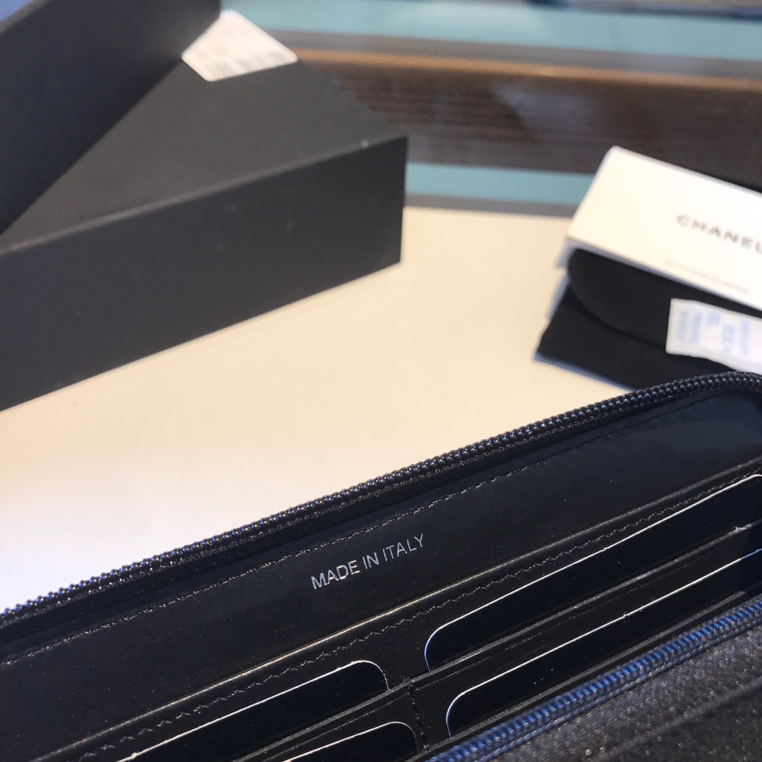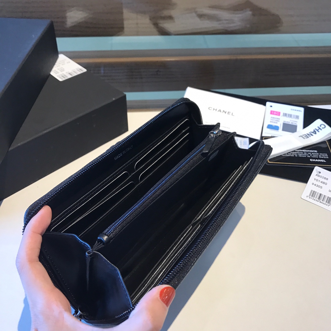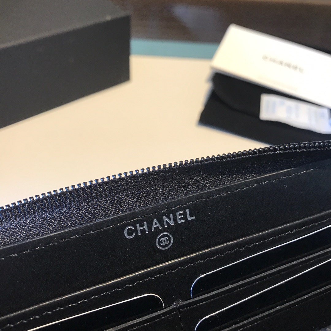 Ch**el classic cf long lychee purse black with green 10.5*19.*3cm