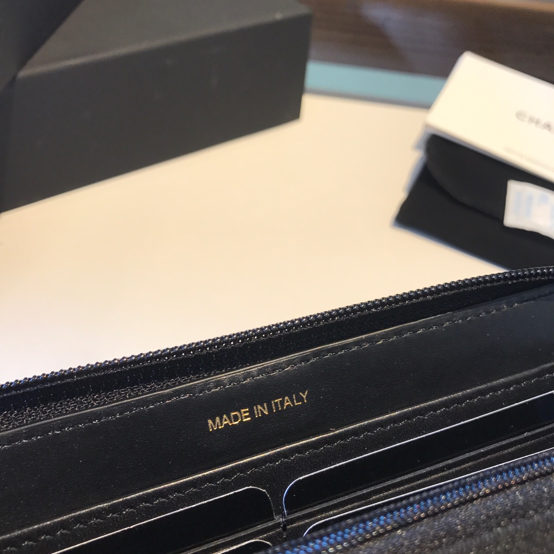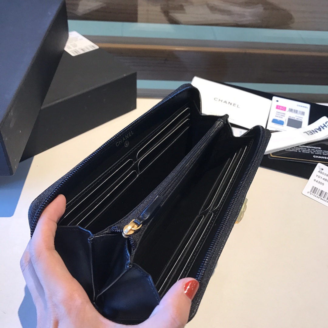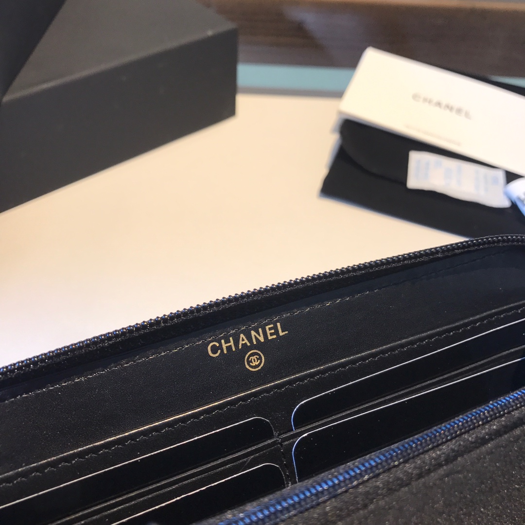 Ch**el classic cf long lychee purse black with green 10.5*19.*3cm