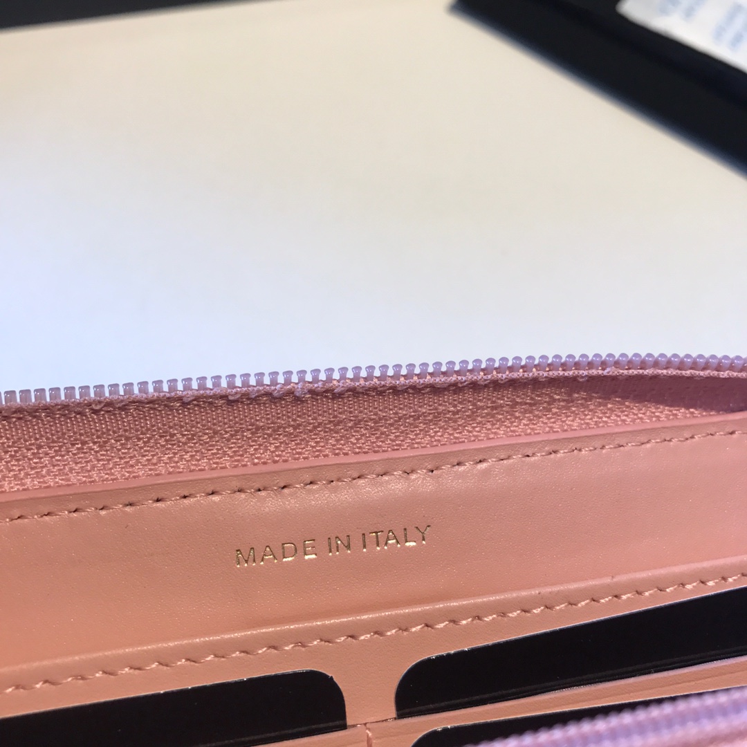 Ch**el card holder with jewel hook lambskin pink ap2397 11 cm