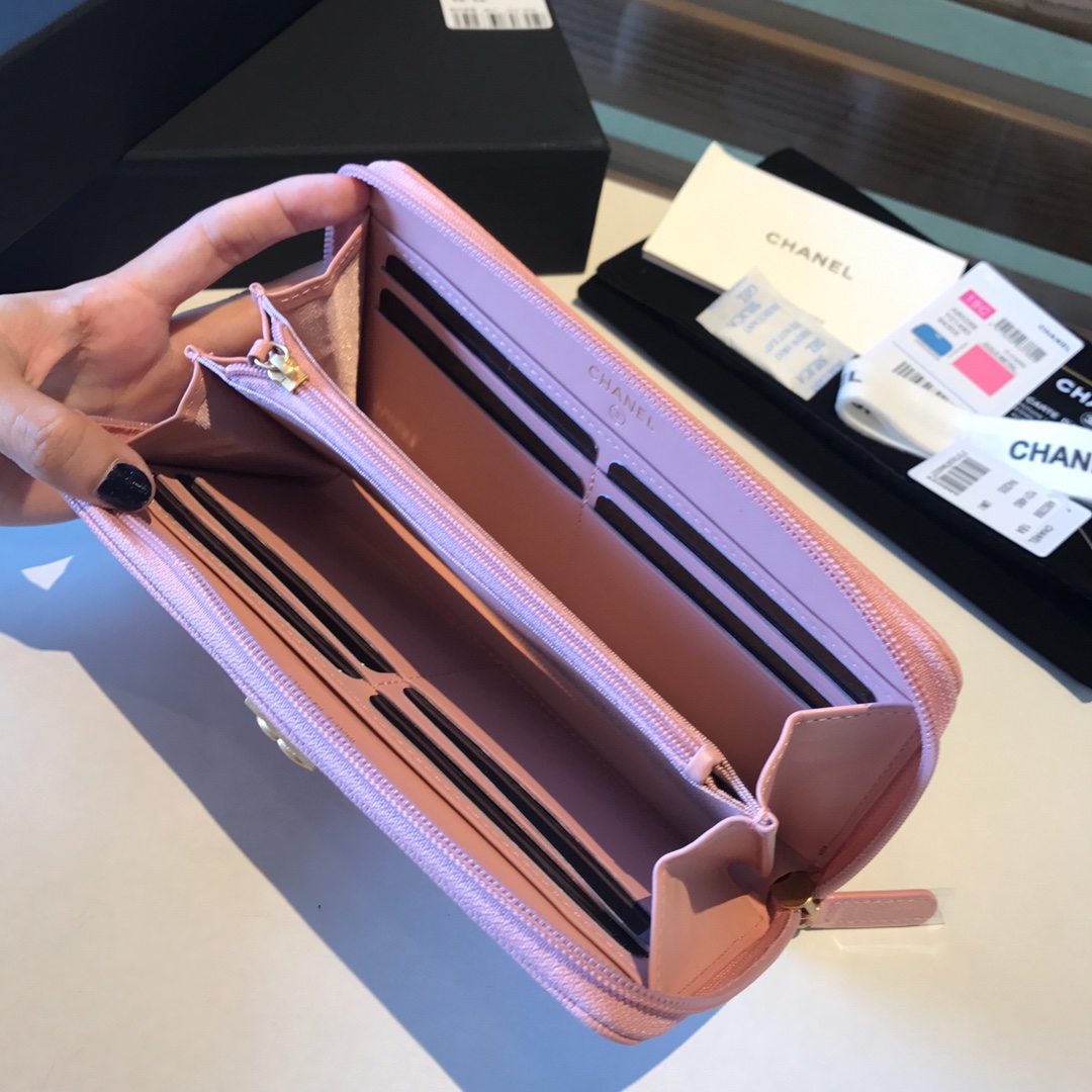Ch**el boy long zipped wallet black metal black a80815 19cm
