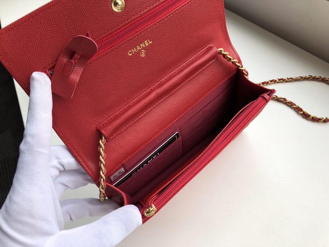 Ch**el 19 wallet on chain leather black ap0957 19 x 11.5 x 7 cm
