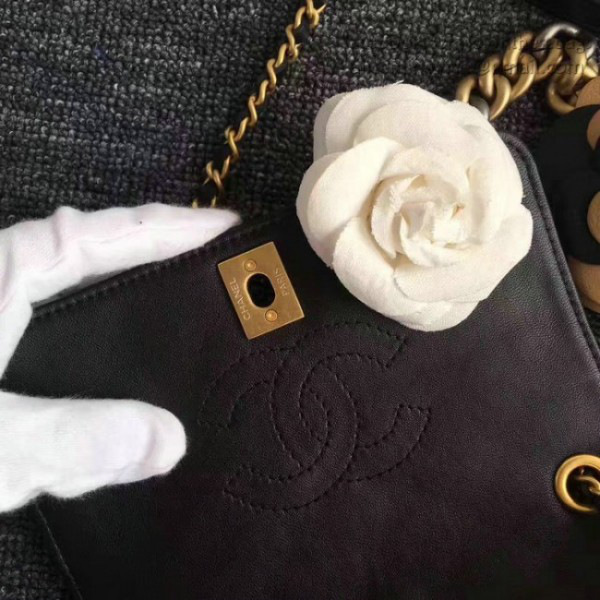 Ch**el original quality 67086 medium v fine ball black gold hardware 25cm