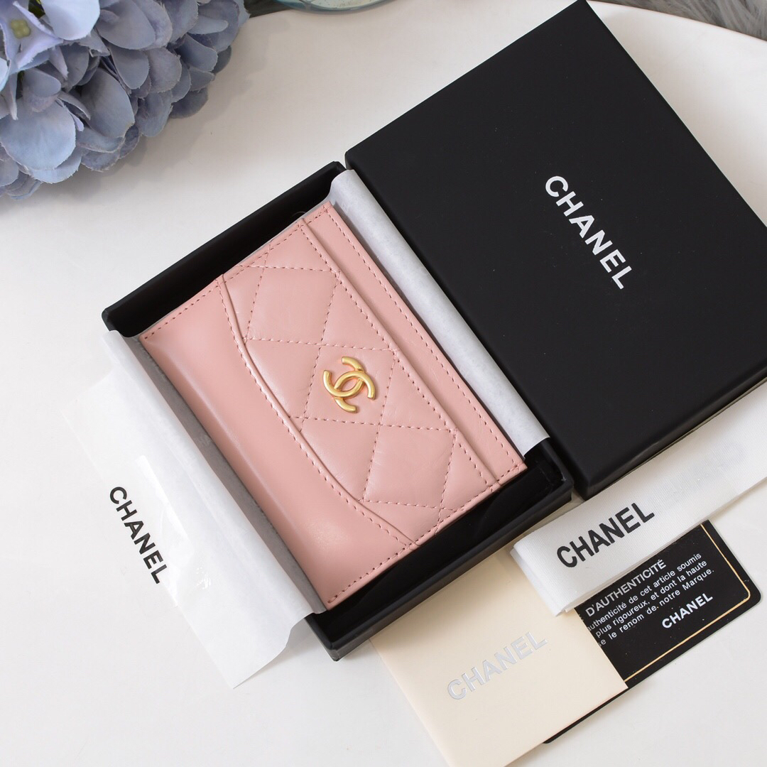 Ch**el lambskin small wallet on chain beige a91365 vs03969