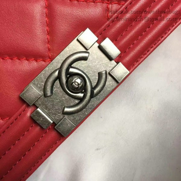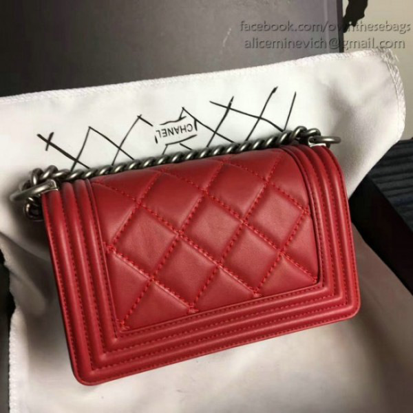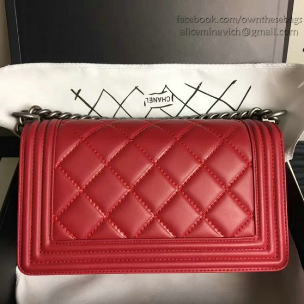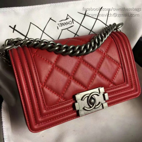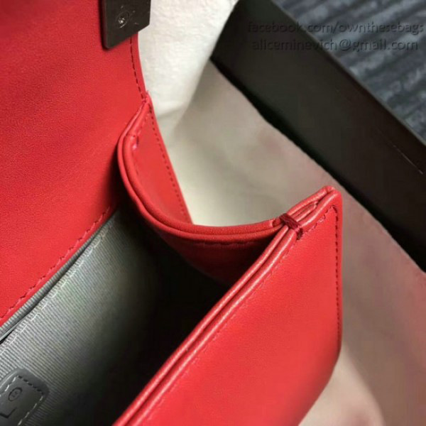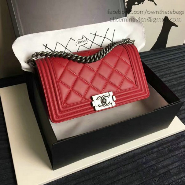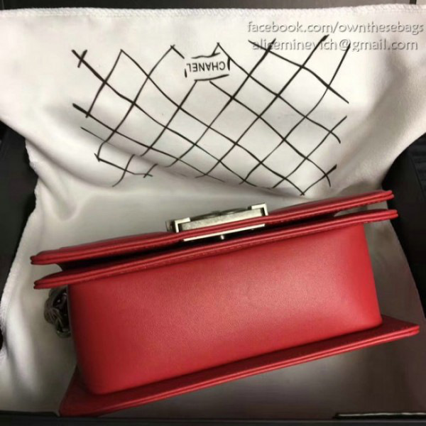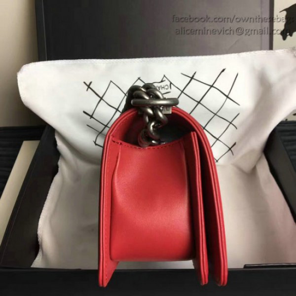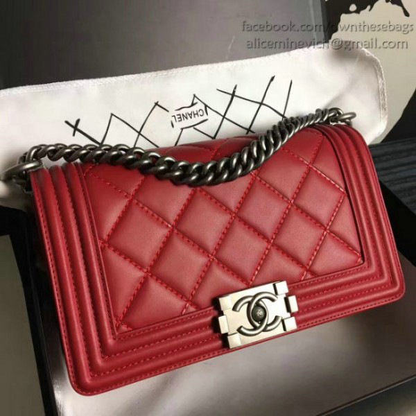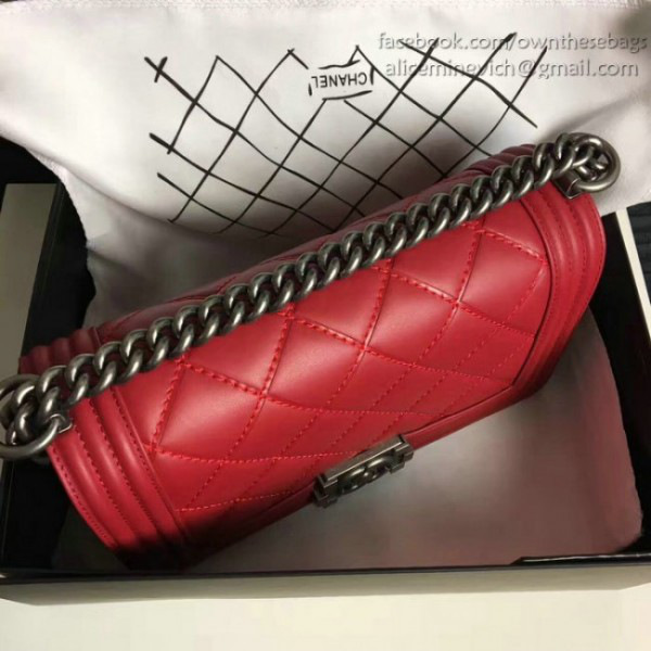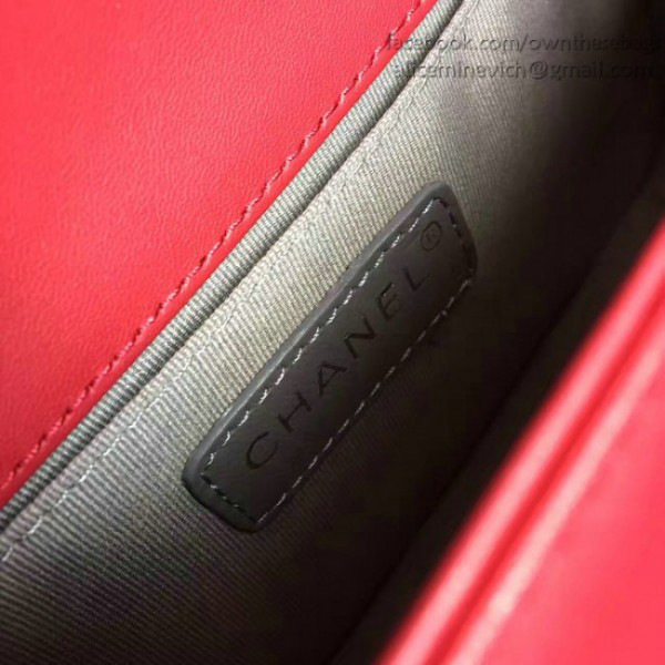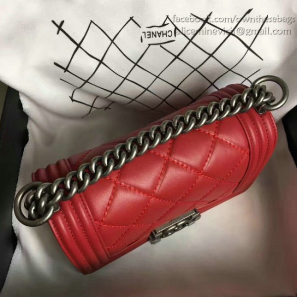 Ch**el boy handbag grained calfskin & ruthenium-finish metal black a67086 25 cm