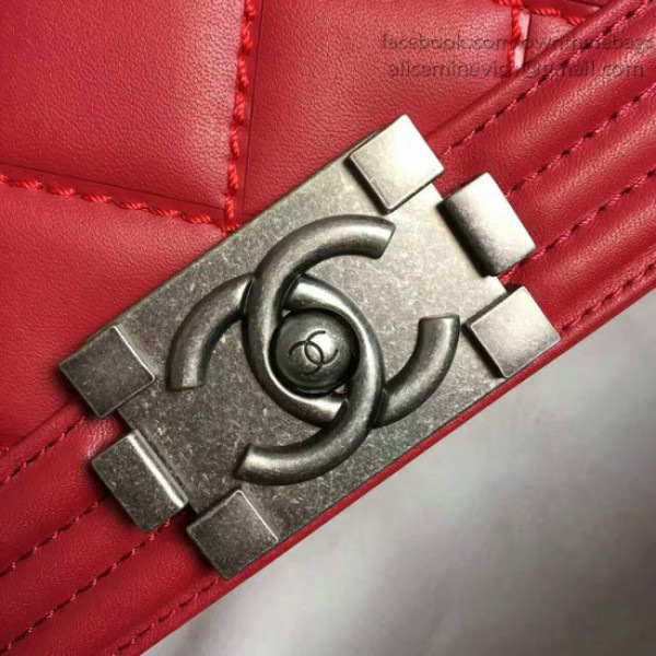 Ch**el chevron lambskin quilted boy bag with top handle black