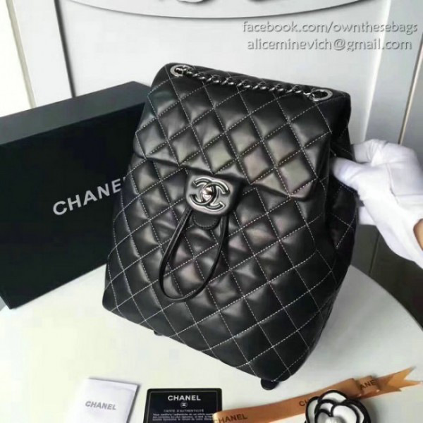 Ch**el large lambskin drawstring backpack in seoul bag black 010402 vs07736