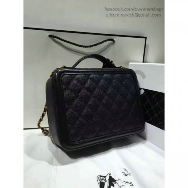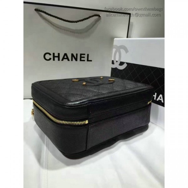 Ch**el small vanity case lambskin and gold metal black as2630 15 x 10 x 11 cm
