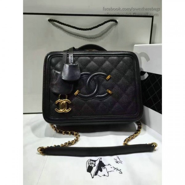 Ch**el small white cc filigree chain around vanity case black as1785 18 x 14 x 8 cm
