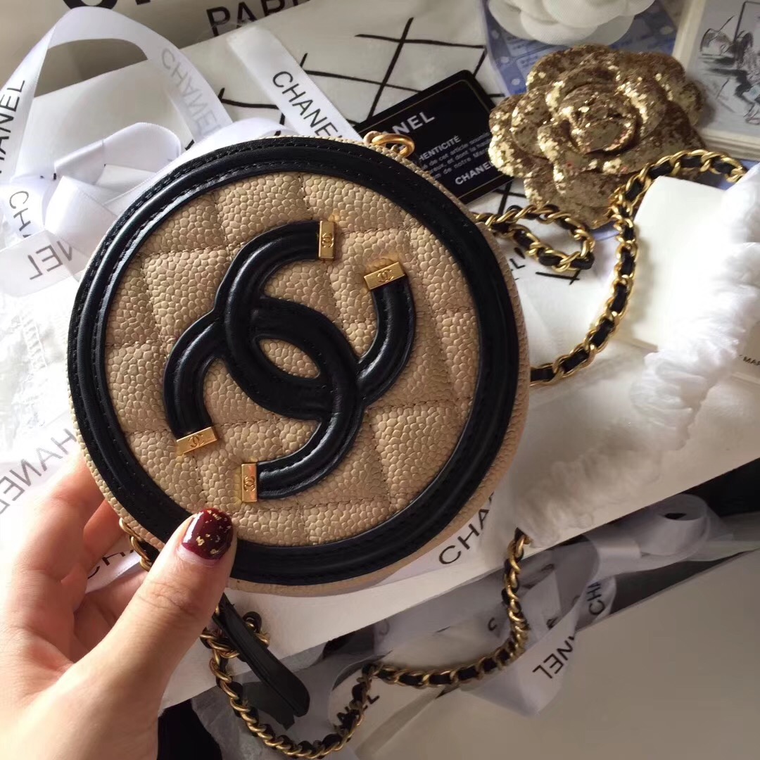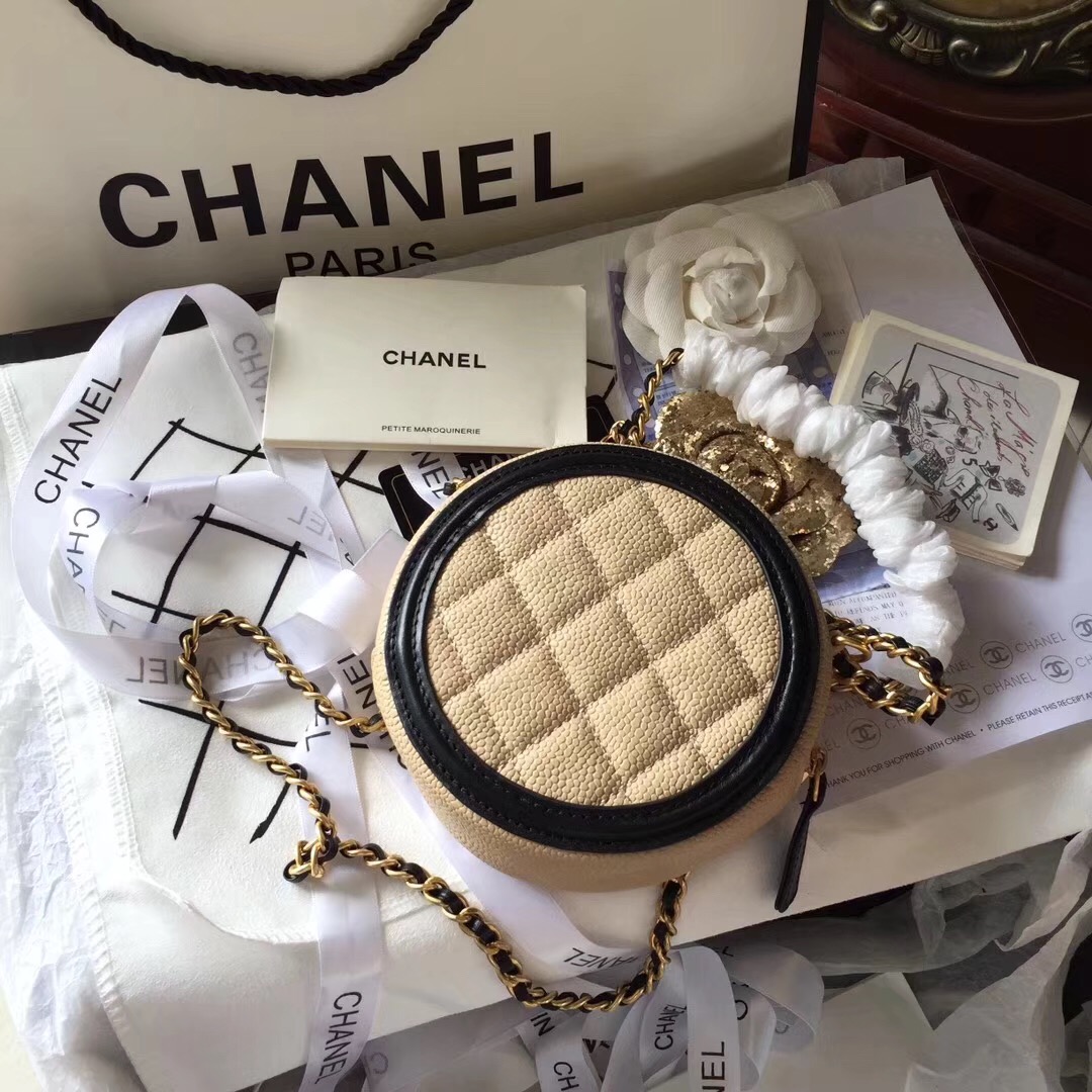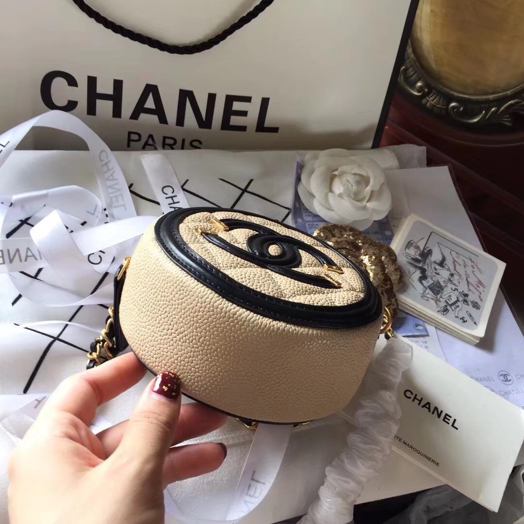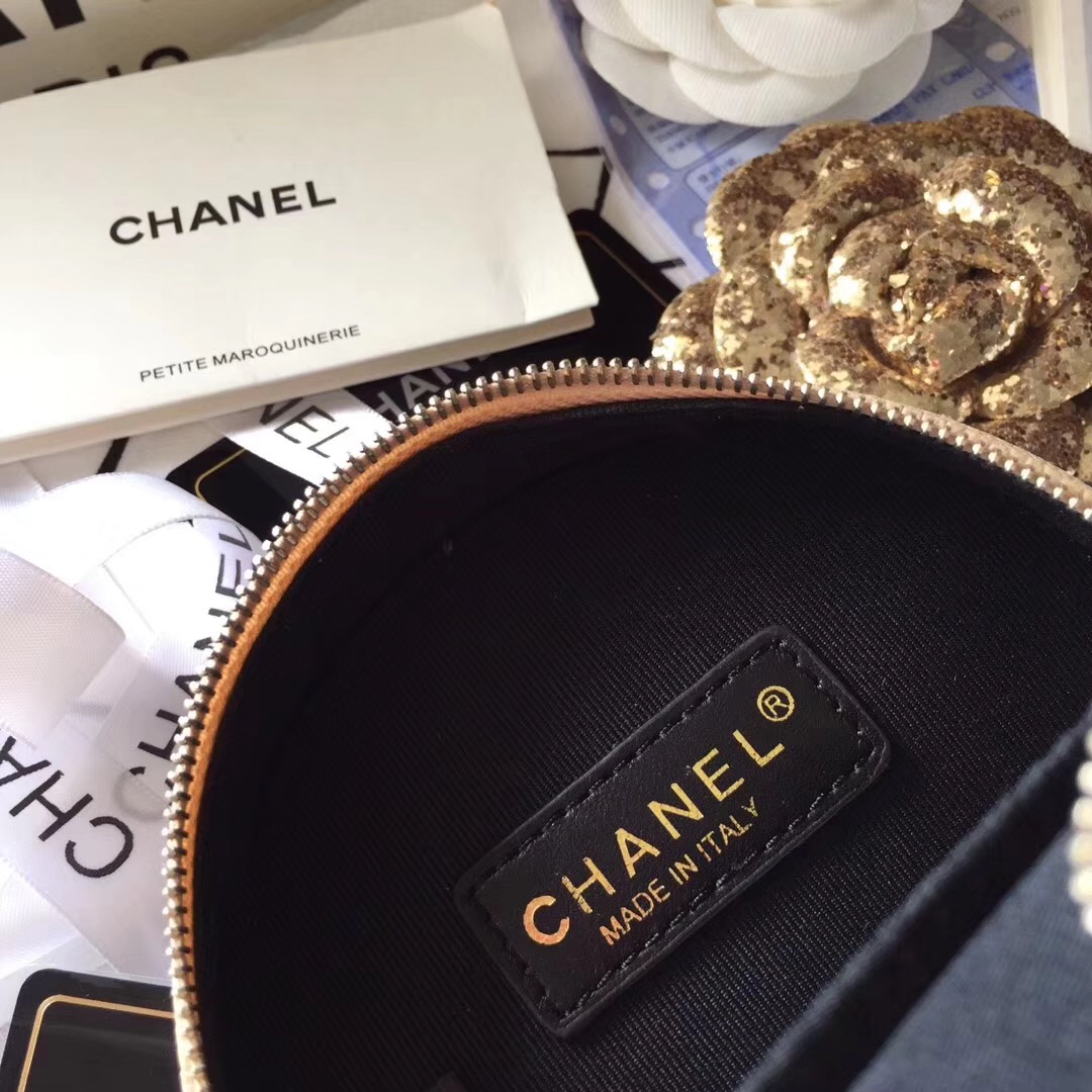 Ch**el quilted pearl crush round bag black as1449 12 x 12 x 4.5 cm