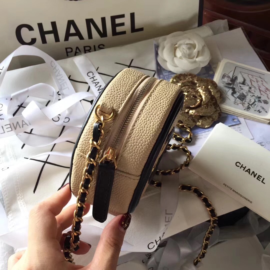 Ch**el small vanity case lambskin and gold metal black as2630 15 x 10 x 11 cm