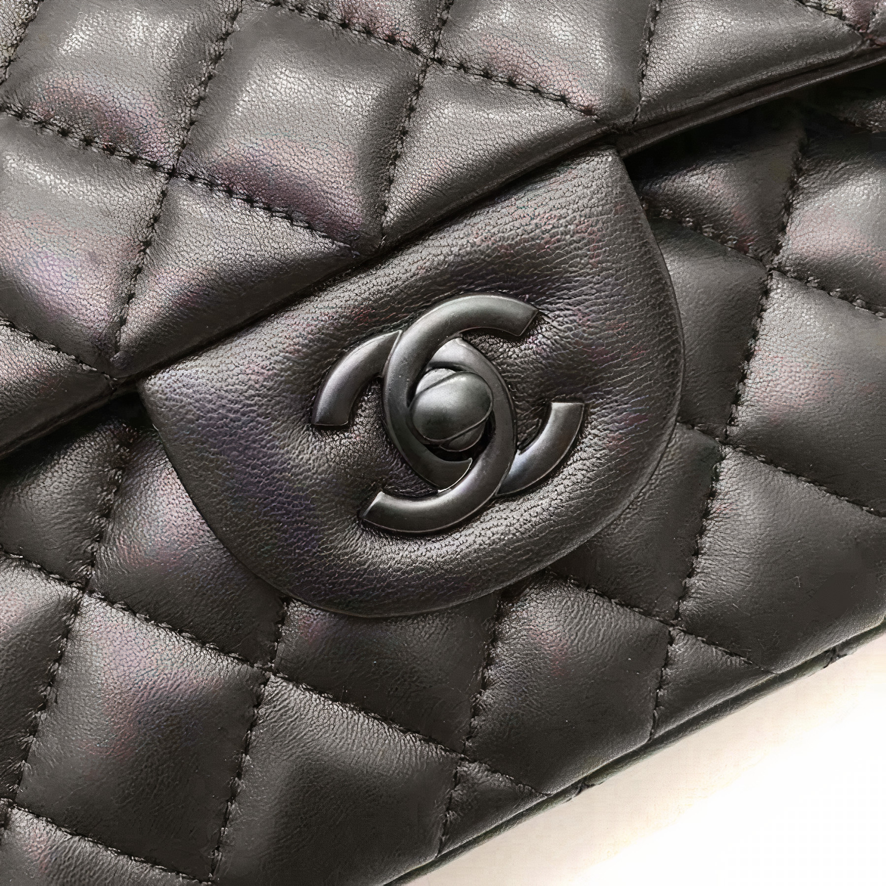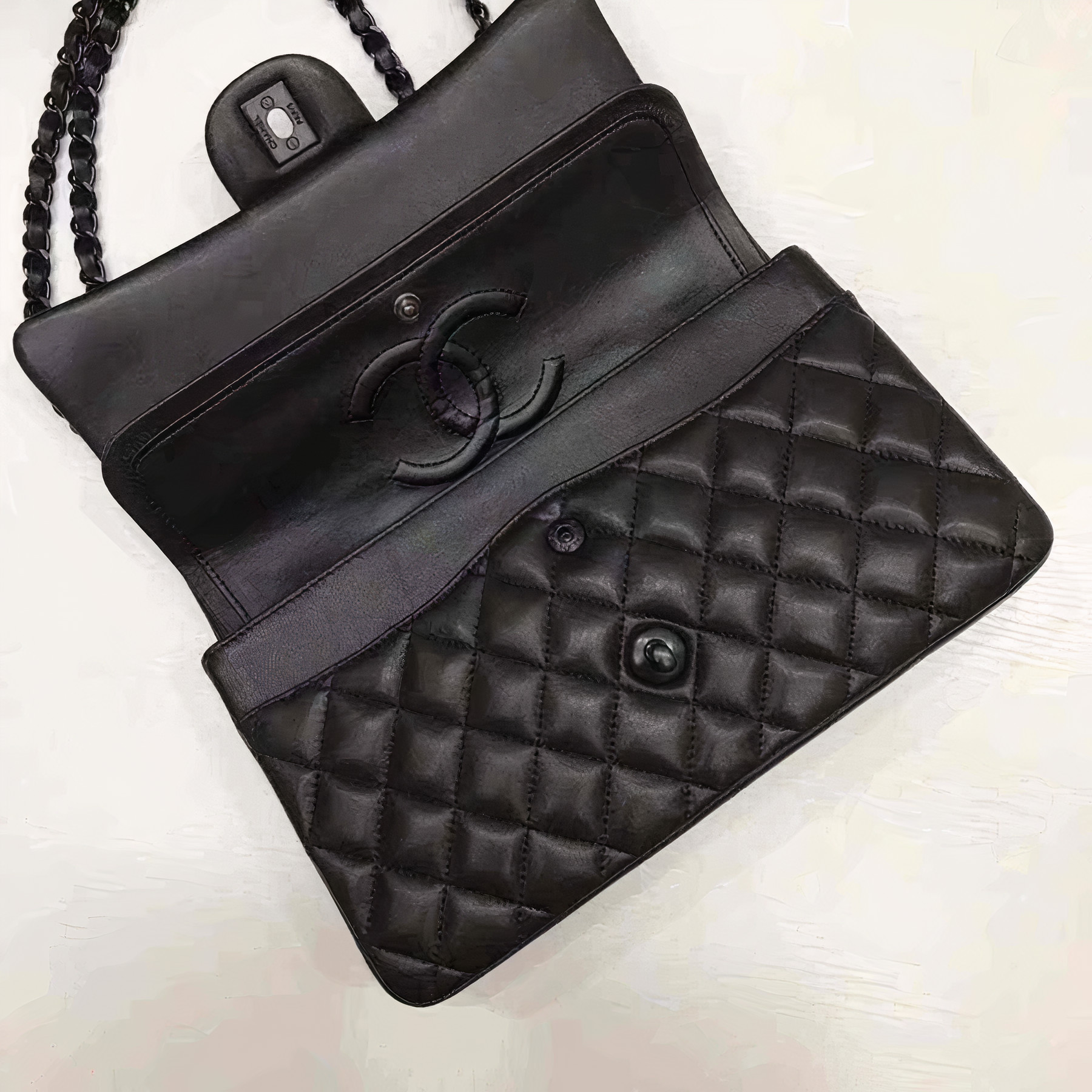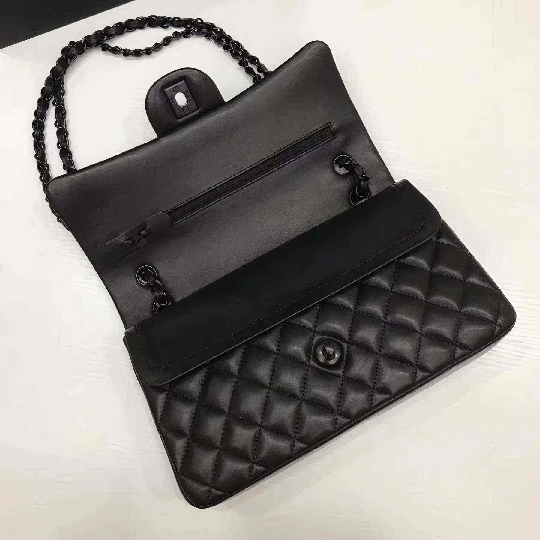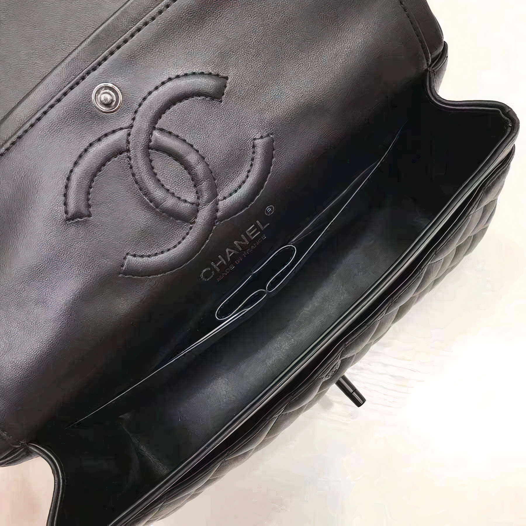 Ch**el classic flap bag black lambskin sliver chain a01112 25.5cm