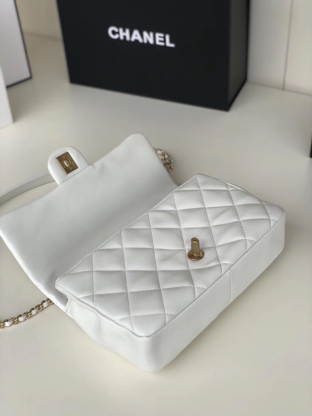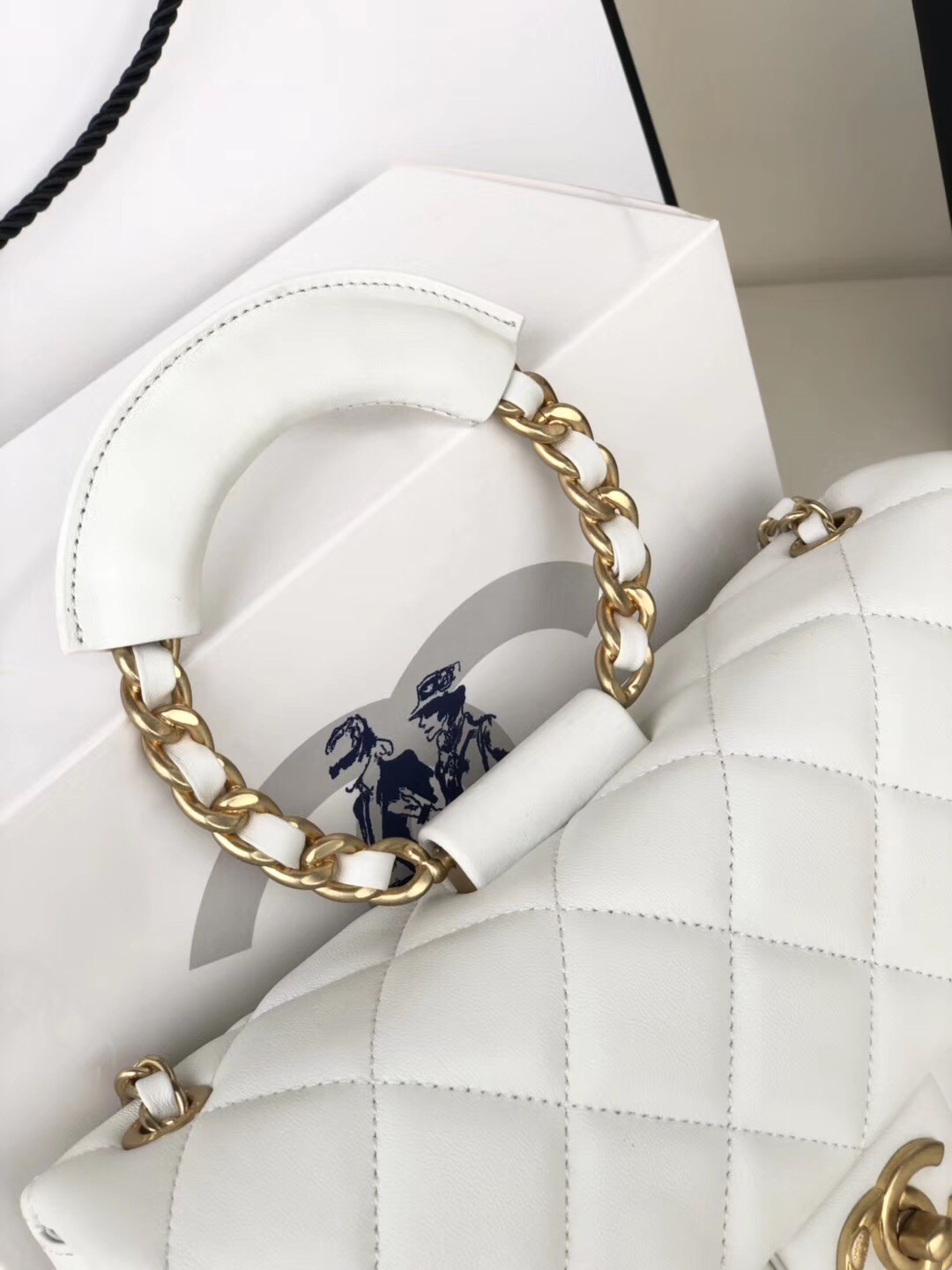 Ch**el circular handle flap bag lambskin white as1358 24 x 15 x 6 cm