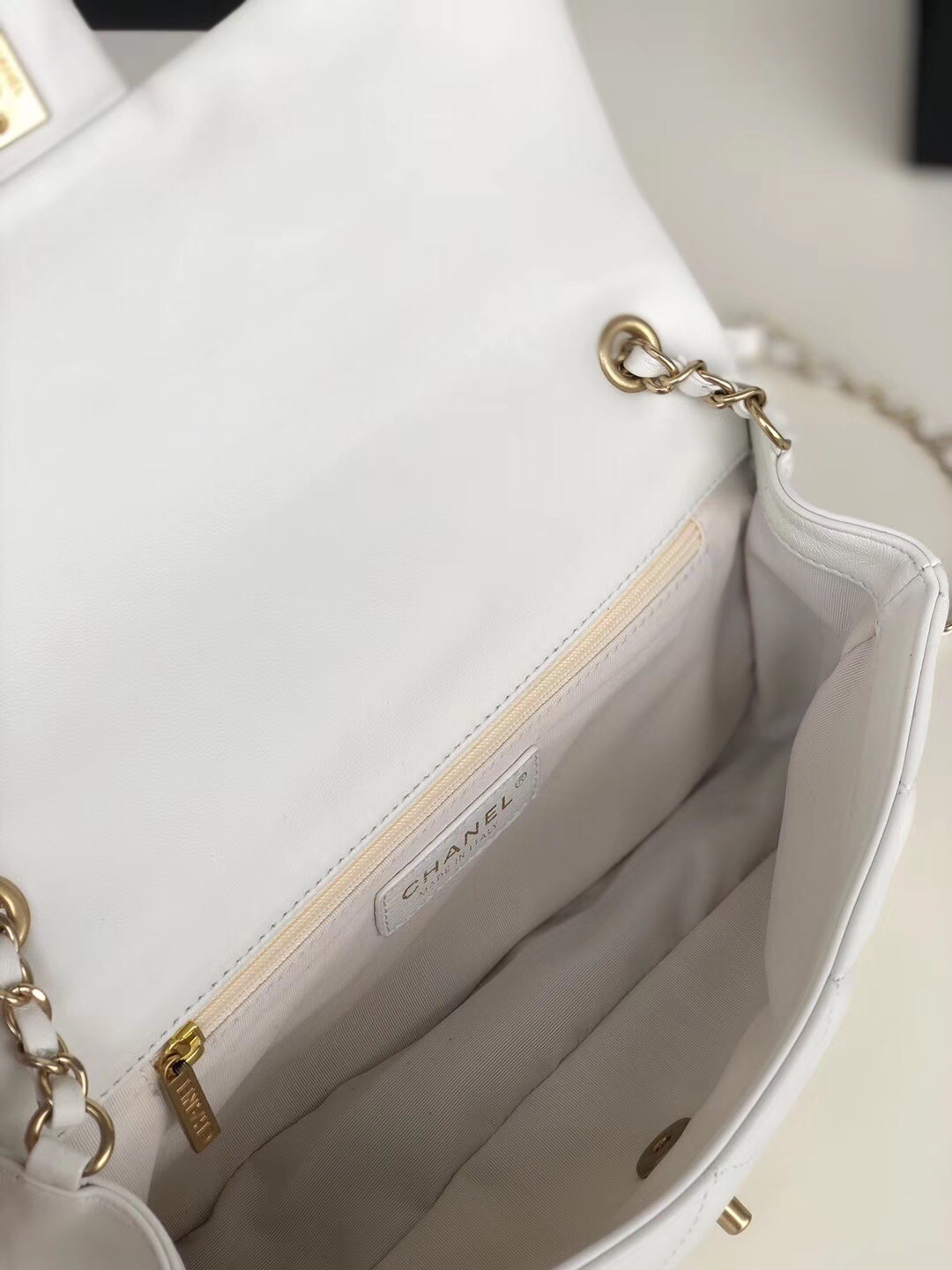 Ch**el 19 handbag calfskin crochet ruthenium-finish metal white & black as1160 16 x 26 x 9 x cm