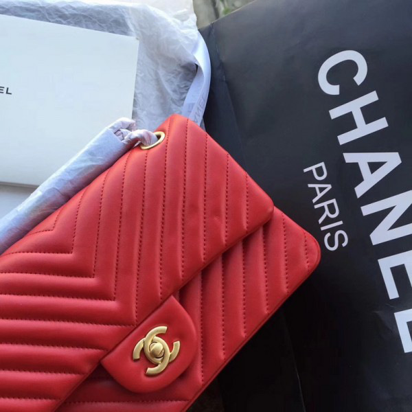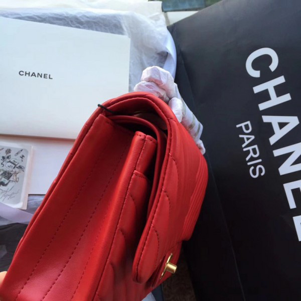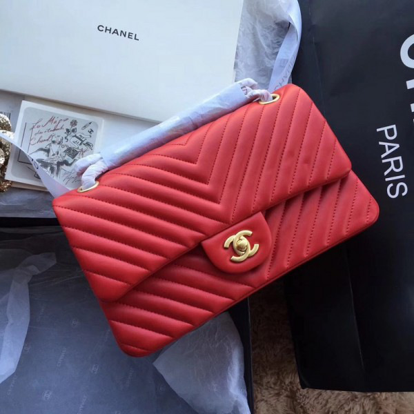 Ch**el classic double flap bag lambskin red a01112 25.5 cm