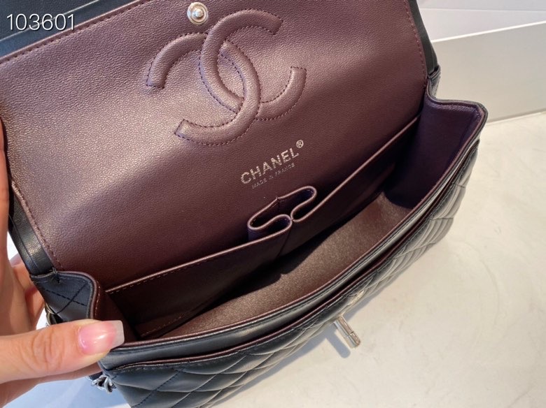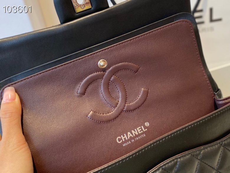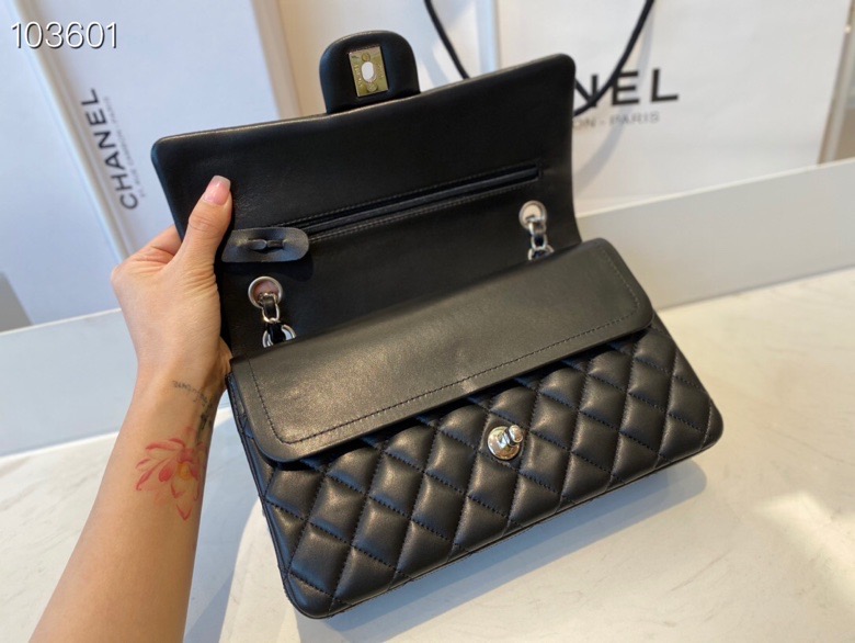 Ch**el lambskin leather flap bag with gold/silver chain black 20cm
