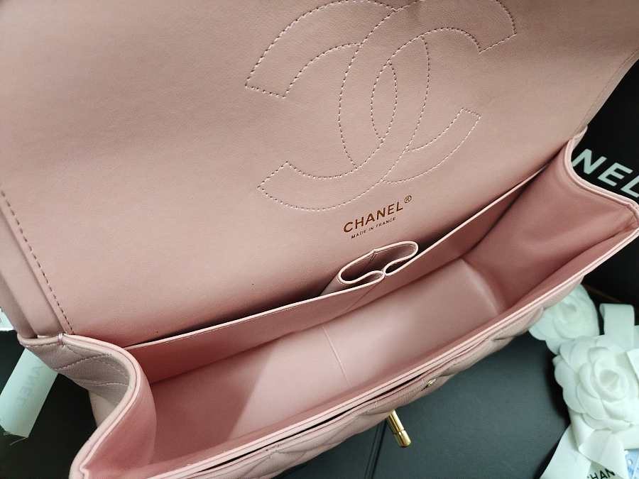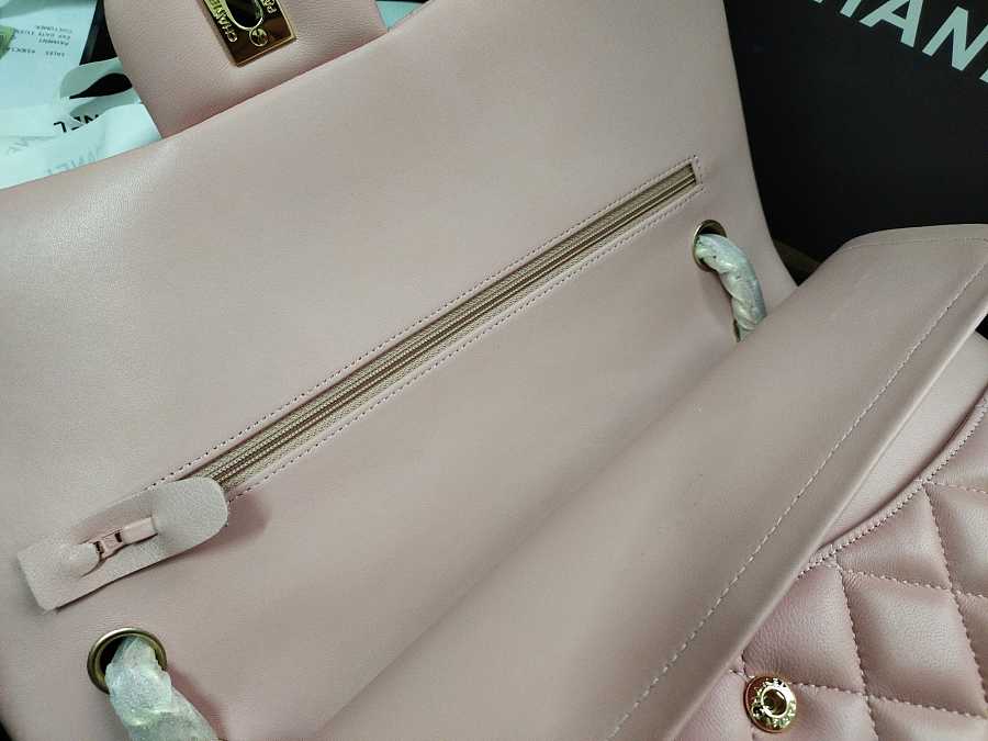 Ch**el classic flap bag beige lambskin leather sliver&gold chain 30cm