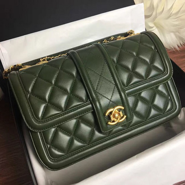 Ch**el quilted lambskin gold-tone metal flap bag green