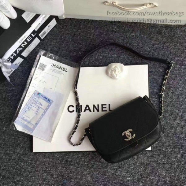 Ch**el camera case with extra clutch leather black as1367 22 x 15 x 6 cm