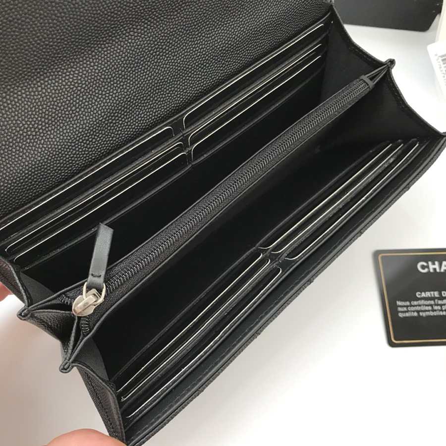 Ch**el long imported deer grain leather v-grain road wallet 80758 black 10.5*19.*3cm