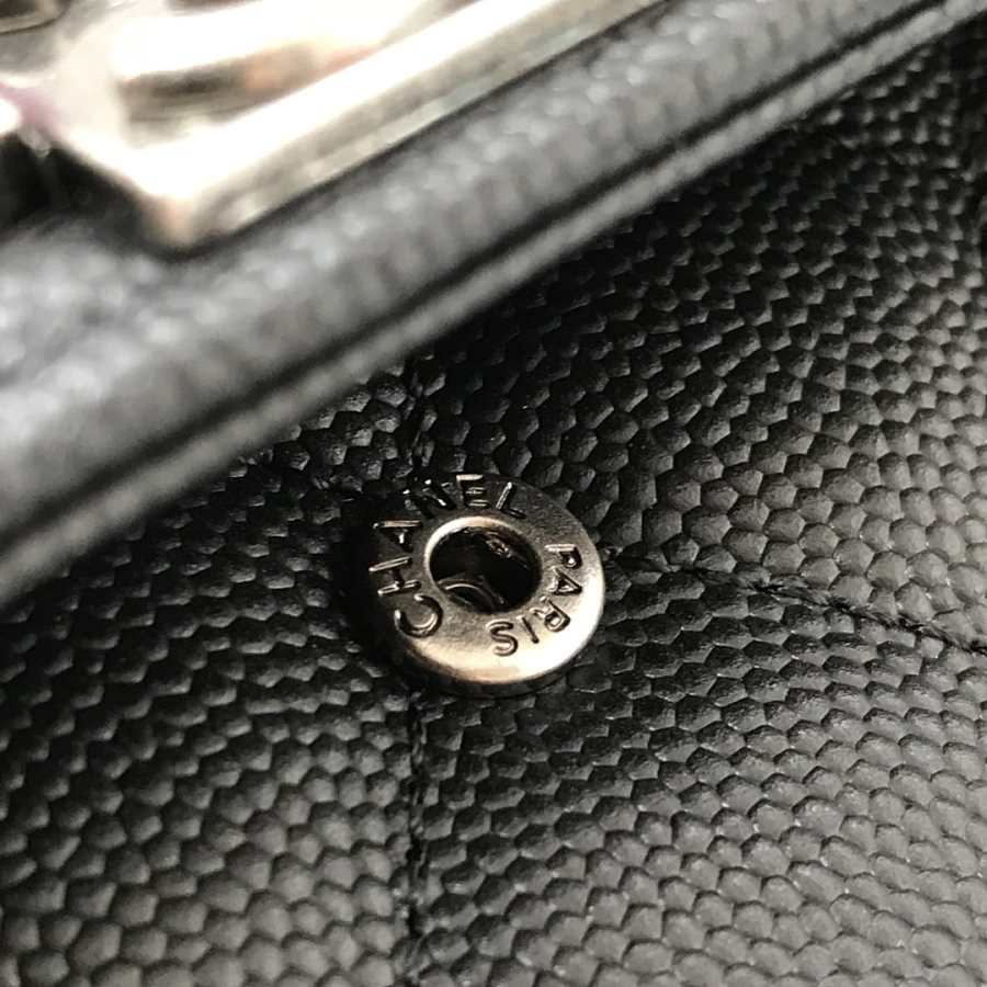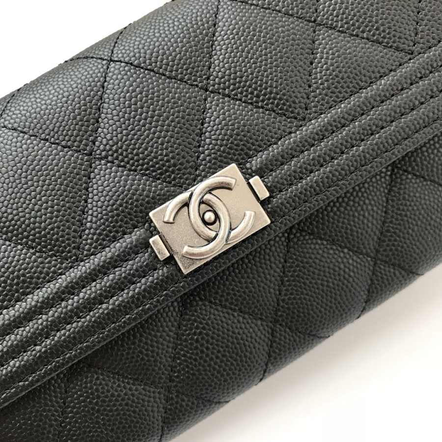 Ch**el boy wallet on chain grained calfskin silver metal black 80287 19.5 x 12.5 x 4 cm