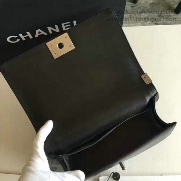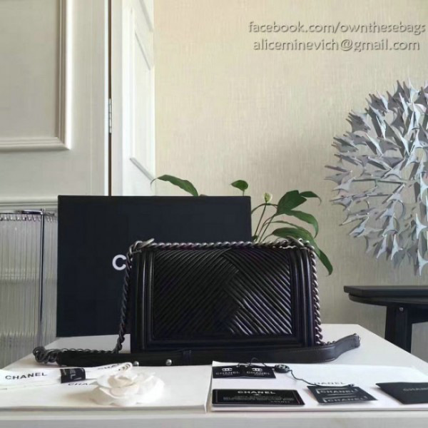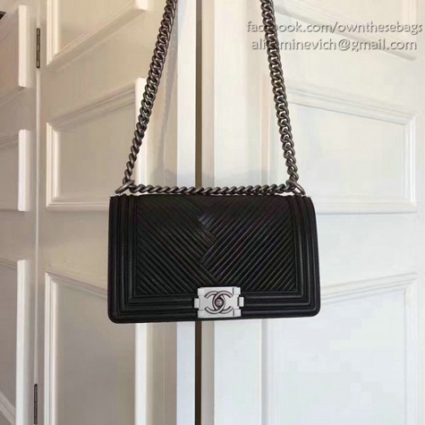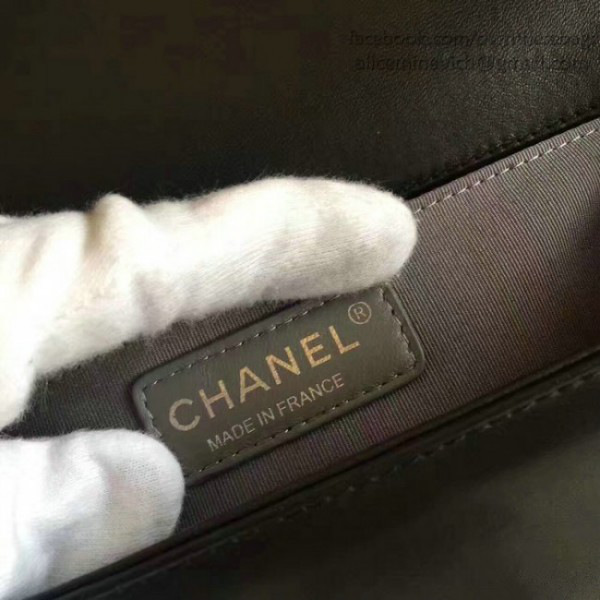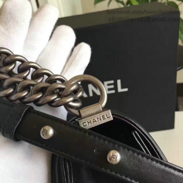 Ch**el boy handbag grained calfskin & ruthenium-finish metal black a67086 25 cm