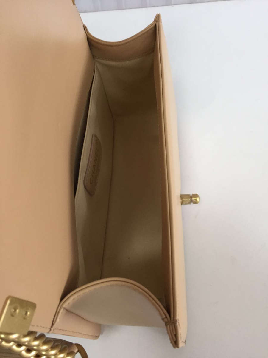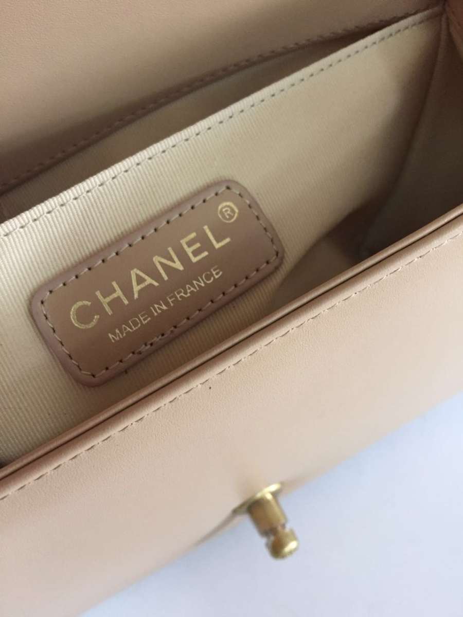 Ch**el medium boy bag classic gold-tone metal grained leather tan a67086 25cm