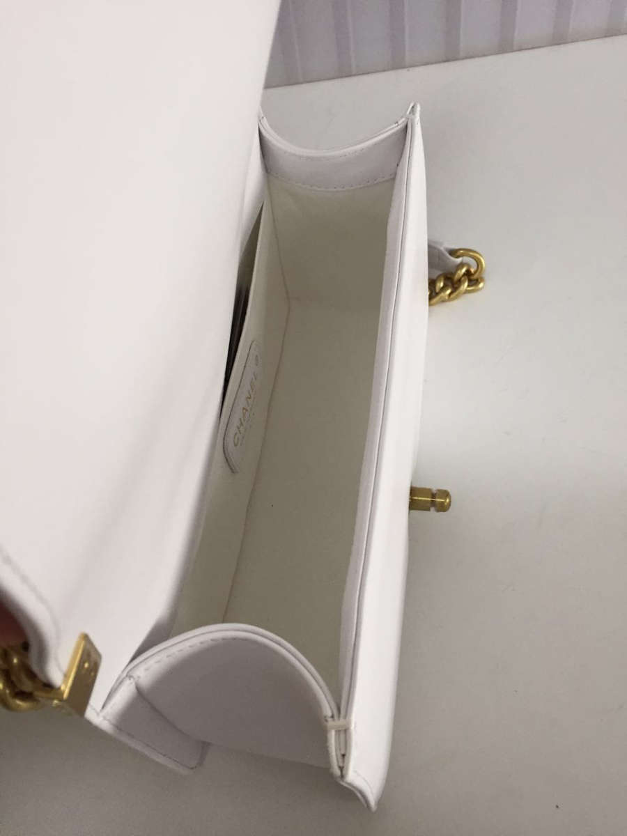 Ch**el medium old classic boy bag lambskin white a67086 25 cm