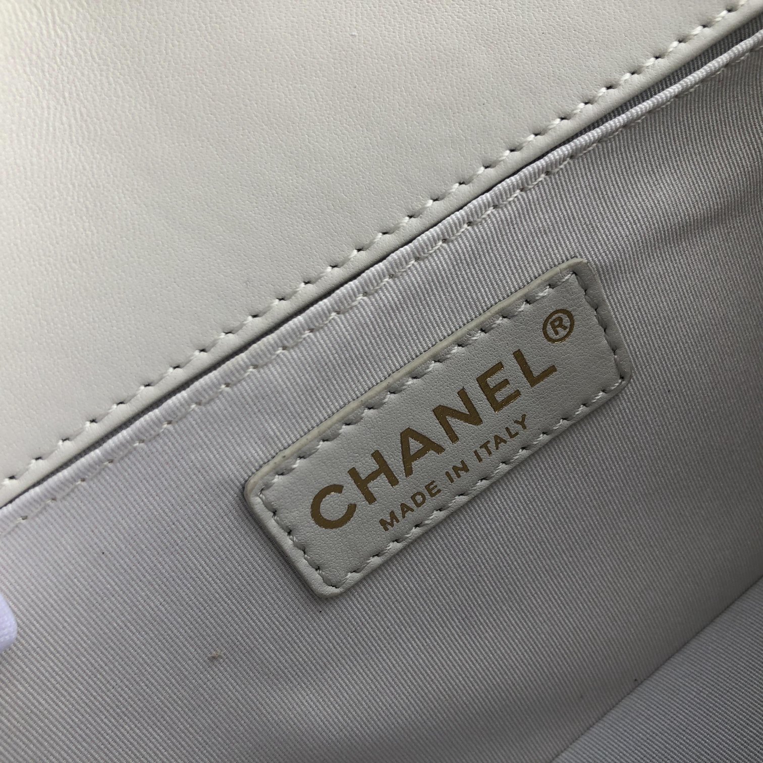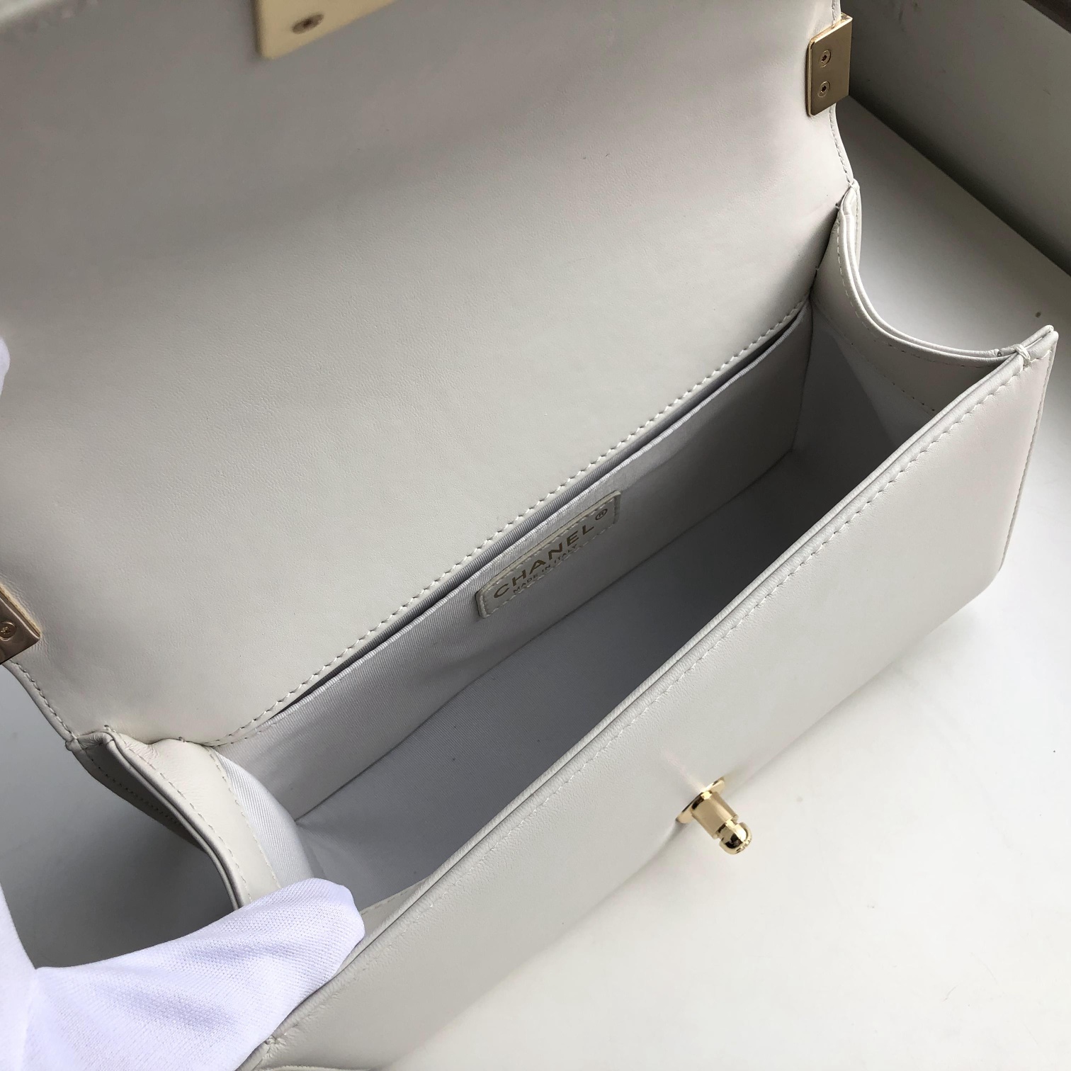 Ch**el medium boy bag chevron gold-tone metal grained leather light gray a67086 25cm