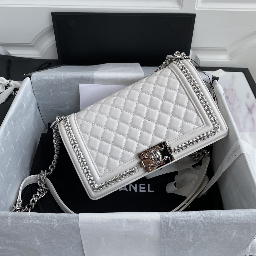Ch**el medium old classic boy bag lambskin light beige a67086 25 cm