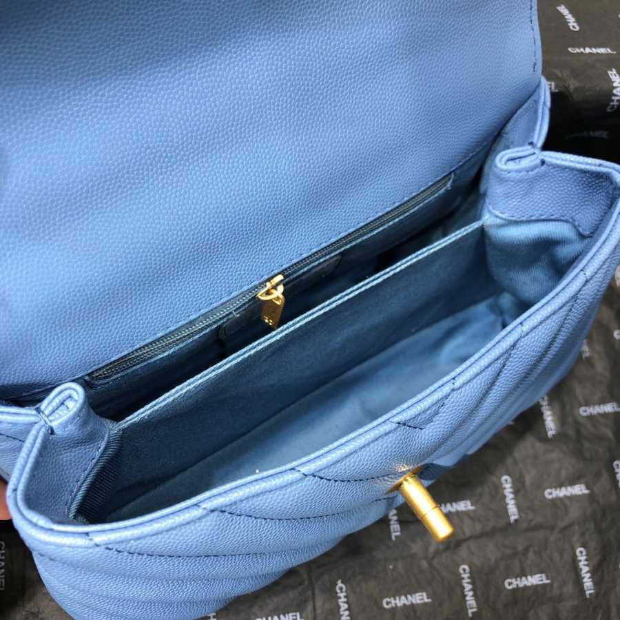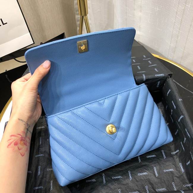 Ch**el mini coco grained calfskin with handle light blue a92990 23.5 x 13.75 x 9.75 cm