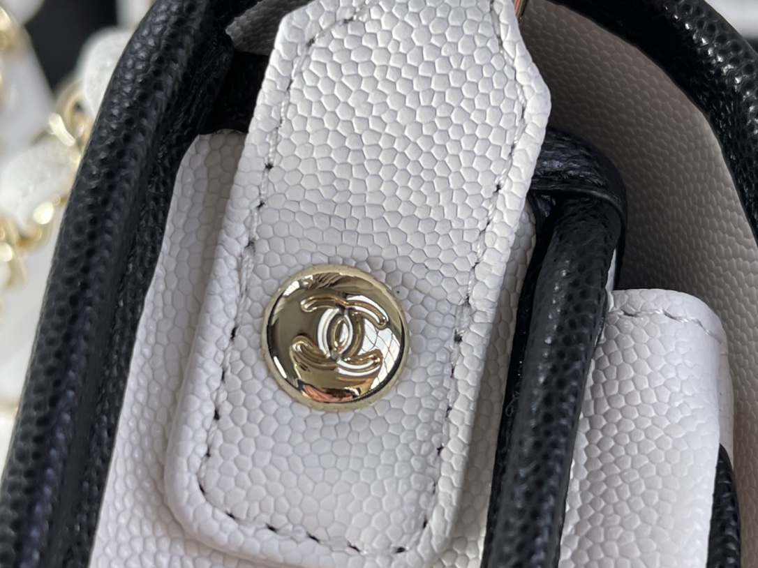 Ch**el mini flap bag handle lambskin & gold metal white as2796 12.5 x 17.5 x 5.5 cm