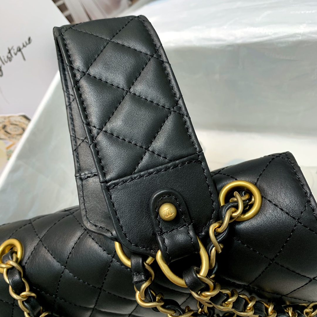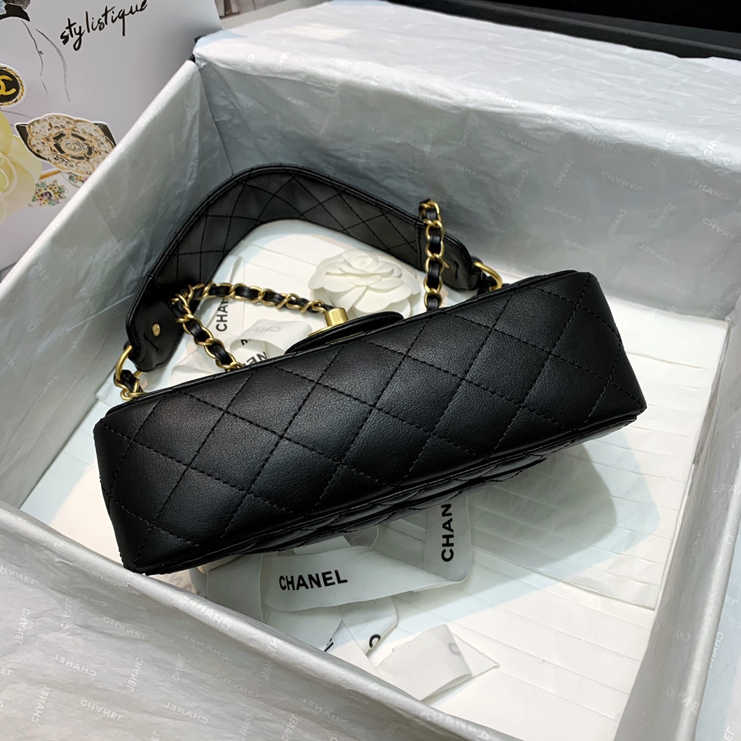 Ch**el caviar leather flap bag with gold hardware black 17.5cm