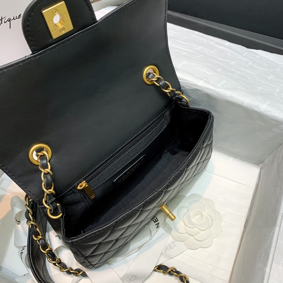 Ch**el small circular handle bag lambskin black as1357 20 x 18 x 7.5 cm