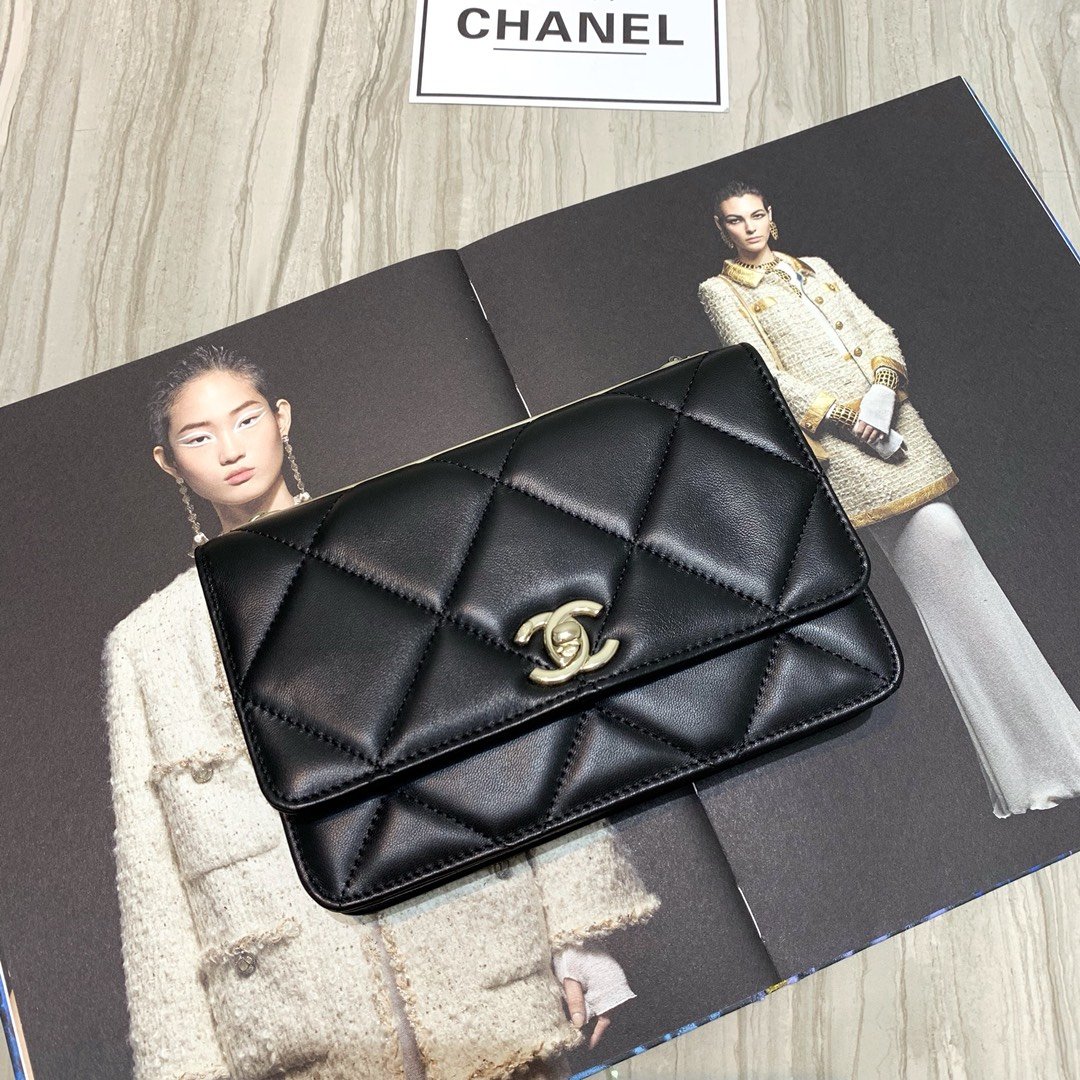 Ch**el vertical camera bag black as1753 17.5 x 14 x 7 cm