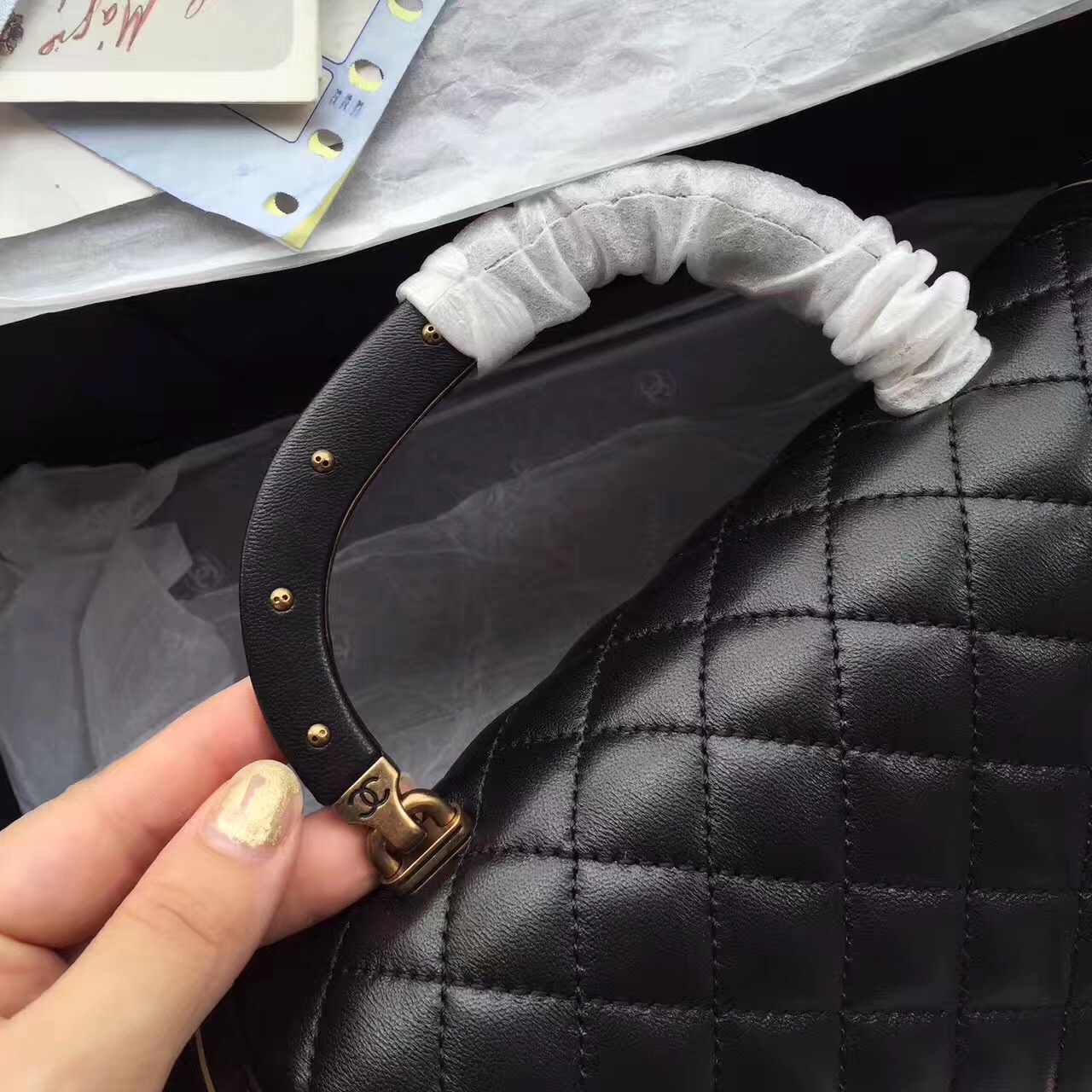 Ch**el lambskin studded logo camera case black as1511 13 x 20 x 5 cm