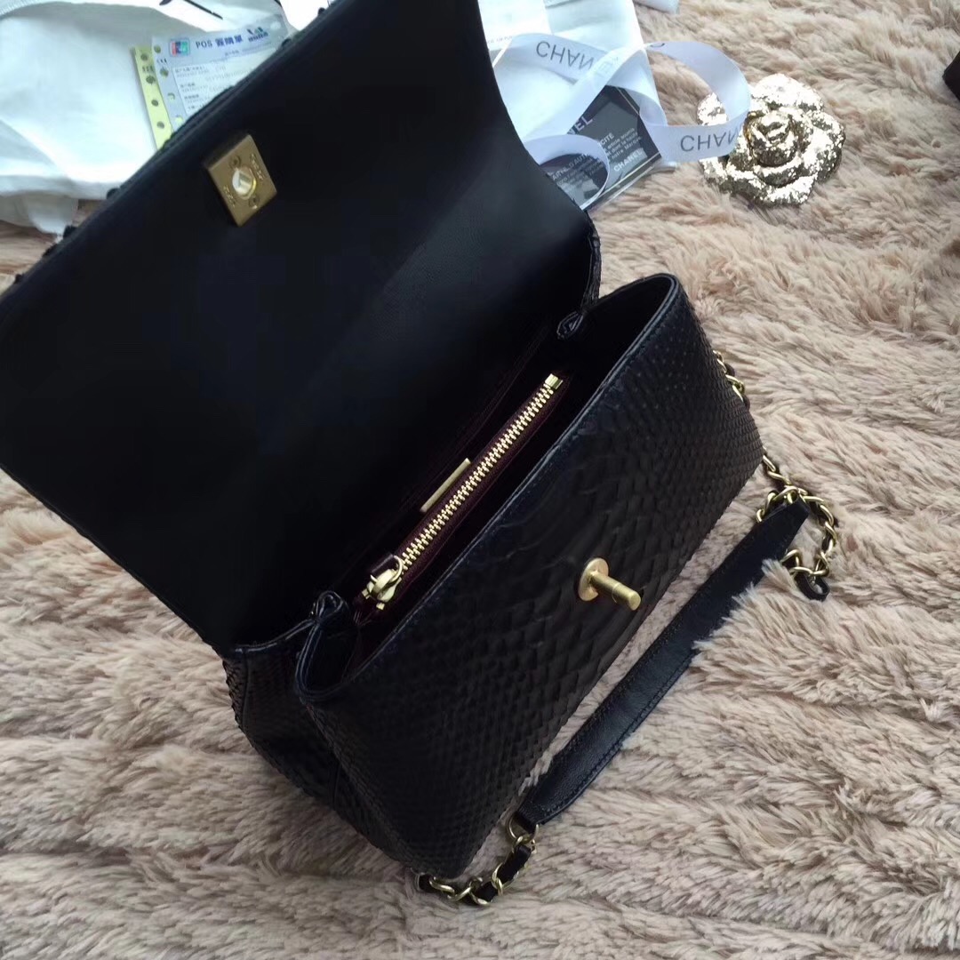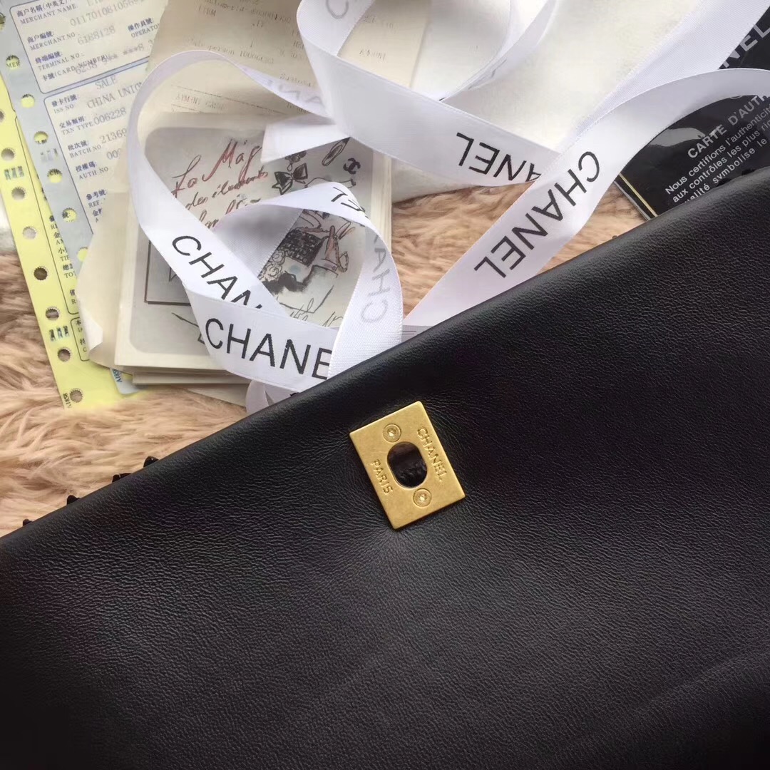 Ch**el grained calfskin caviar stitched shoulder bag black a92949