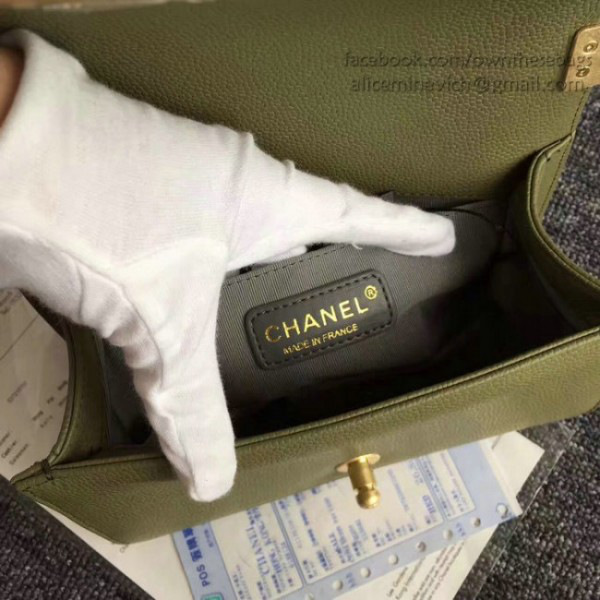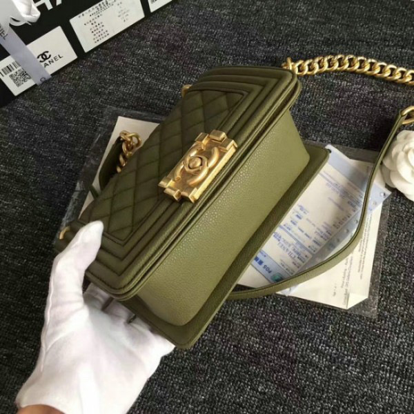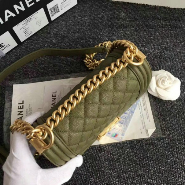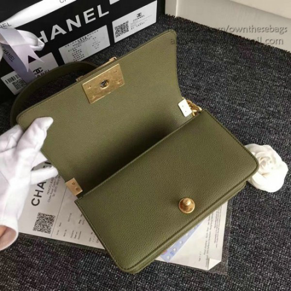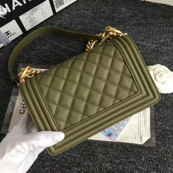 Ch**el medium boy bag classic gold-tone metal grained leather dark gray a67086 25cm