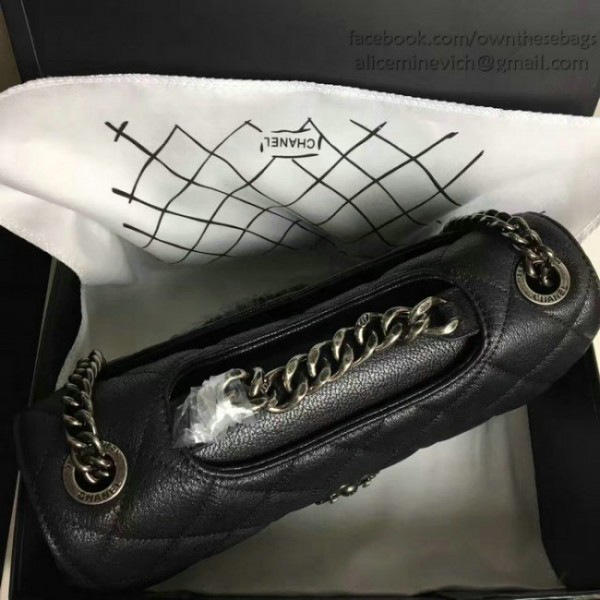 Ch**el small vanity with chain lambskin & gold-tone metal black ap2193 9 x 10 x 10 cm