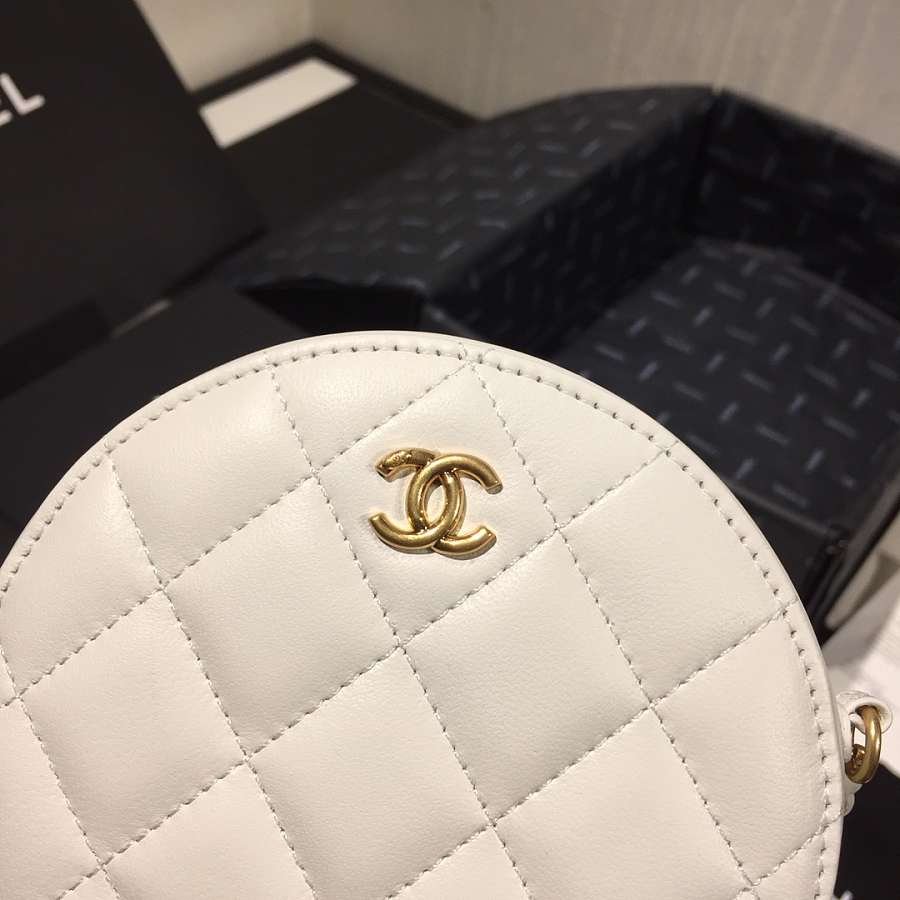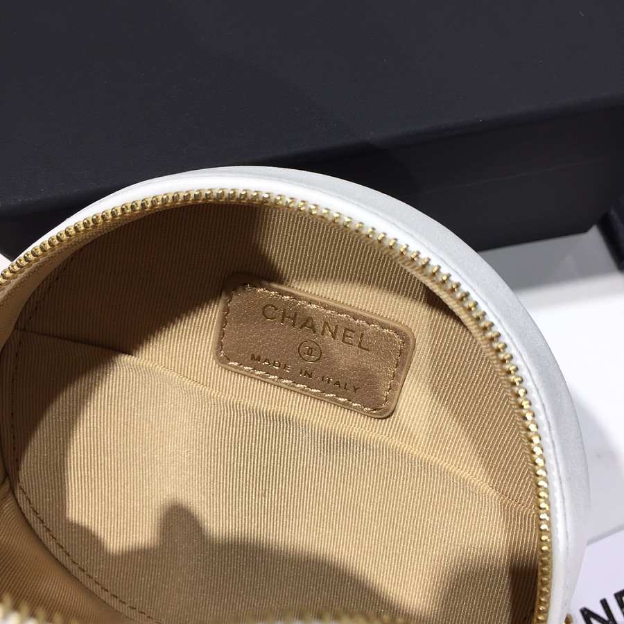 Ch**el quilted pearl crush round bag black as1449 12 x 12 x 4.5 cm