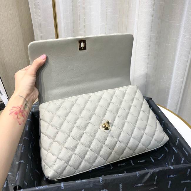 Ch**el small coco handle bag grained leather light beige a92991 28 cm