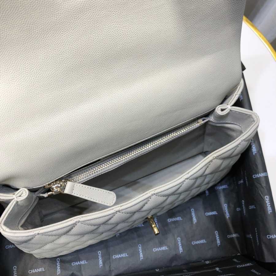 Ch**el small coco grained calfskin with top handle flap bag silver a92991 28.5 x 18.25 x 11.75 cm