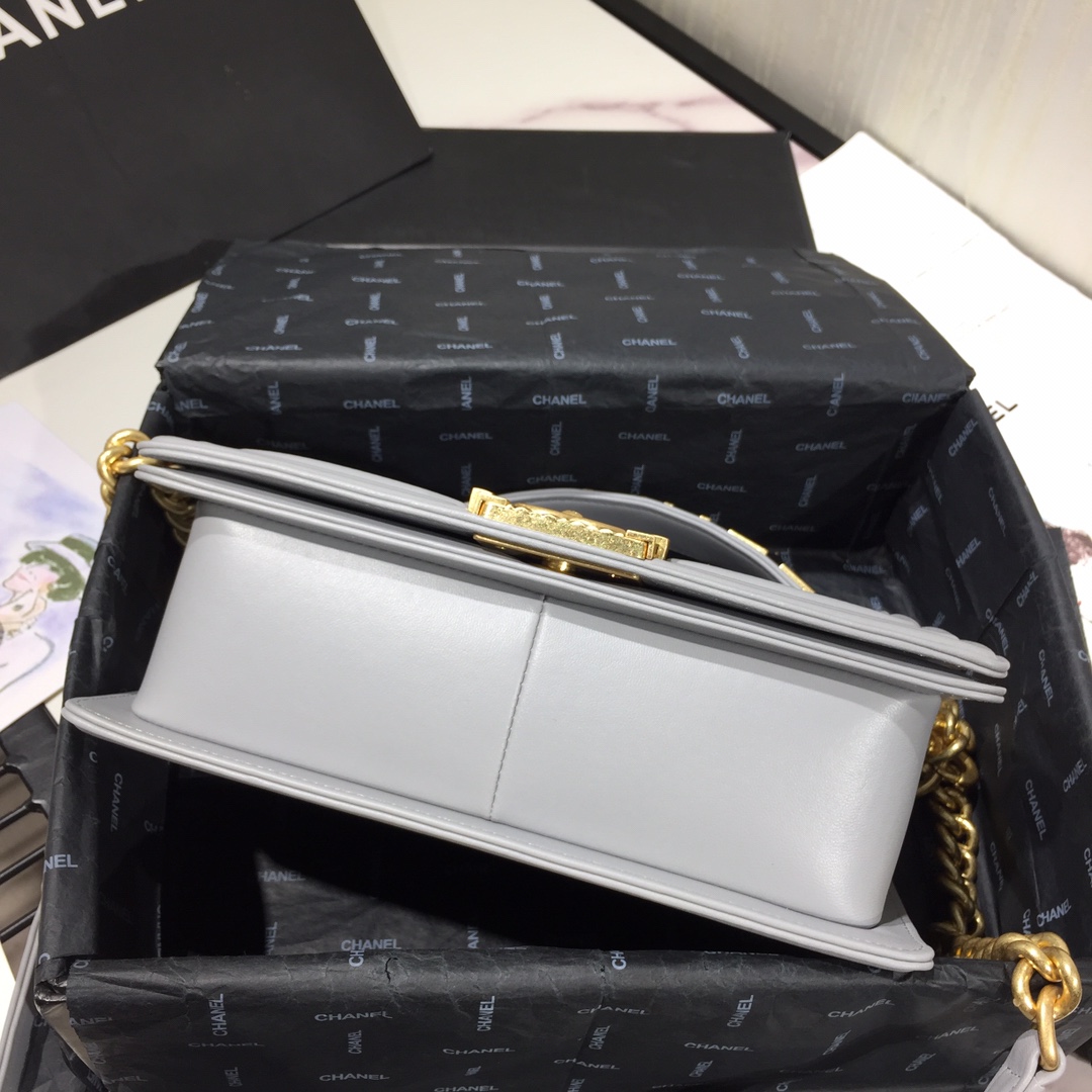 Ch**el medium old classic boy bag lambskin white a67086 25 cm