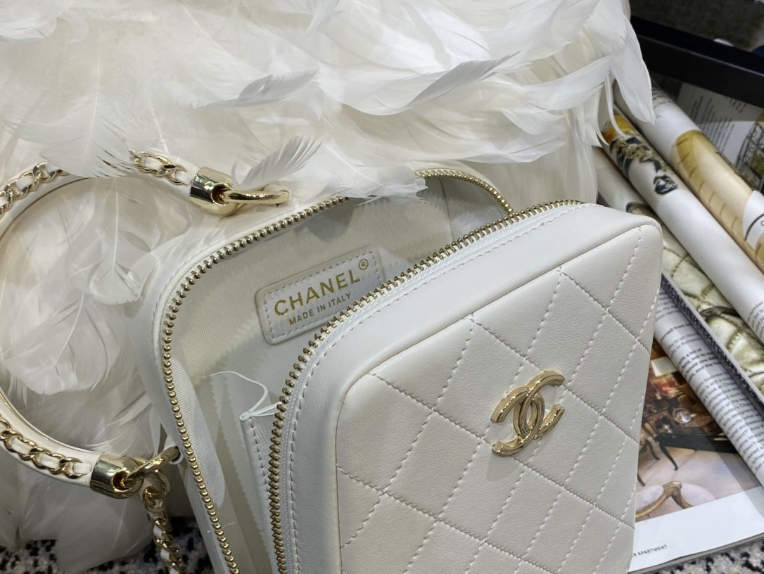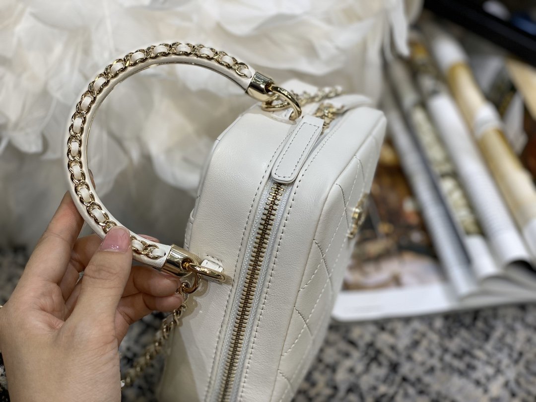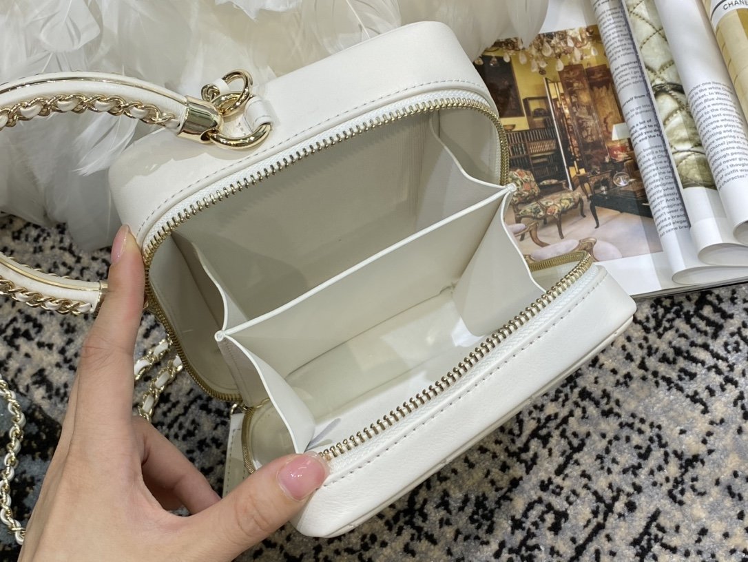 Ch**el small white cc filigree chain around vanity case white as1785 18 x 14 x 8 cm