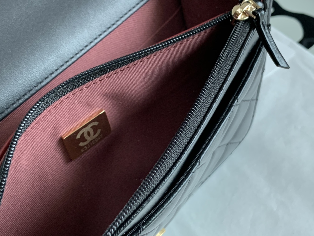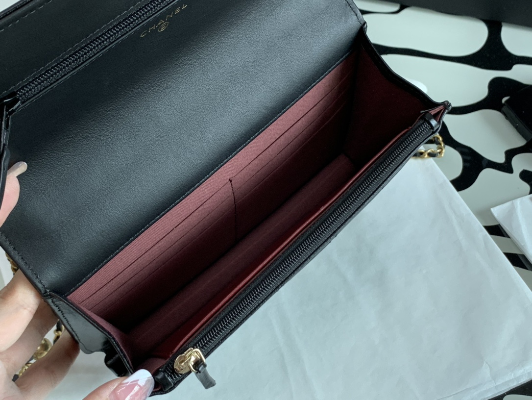 Ch**el wallet on chain calfskin & gold-tone metal beige ap2289 19cm